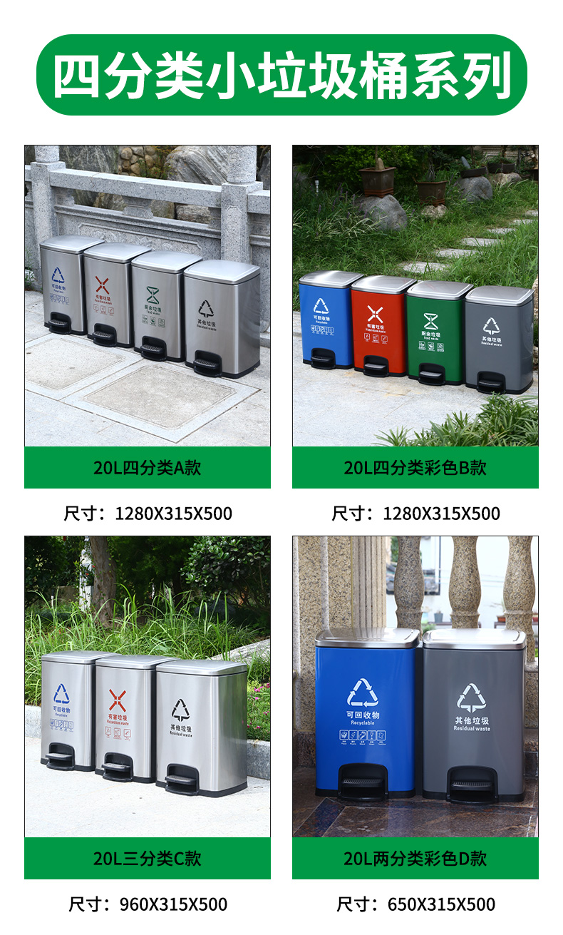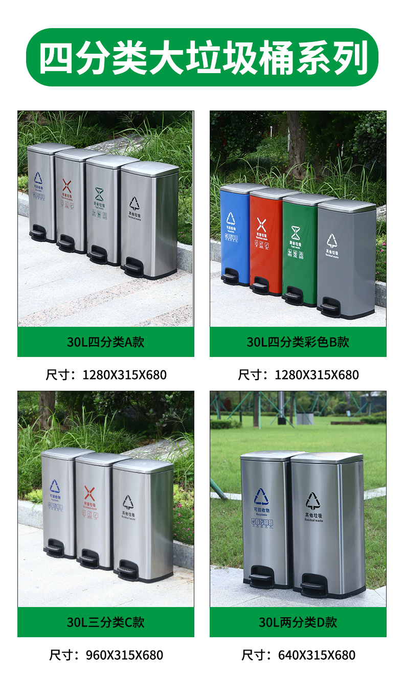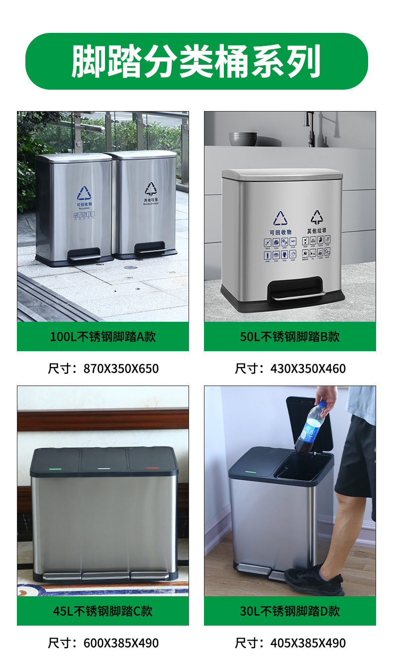 不鏽鋼腳踏式分類垃圾桶學校商場辦公樓家用大帶蓋公共電梯口乾溼