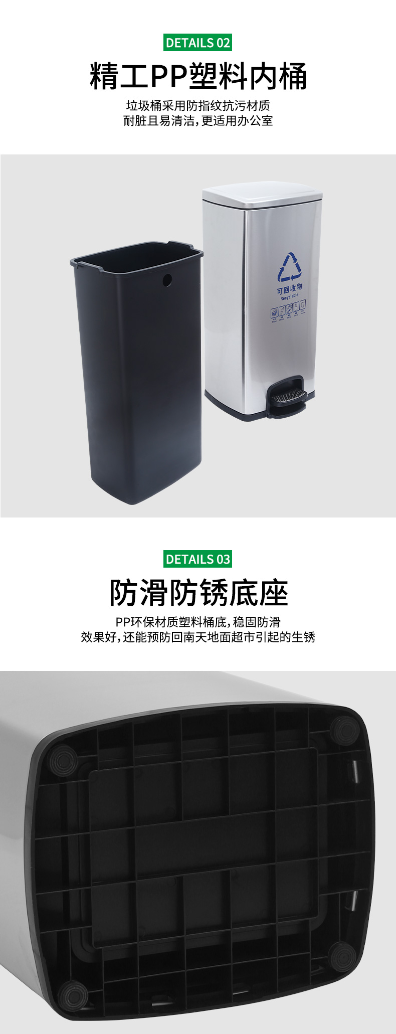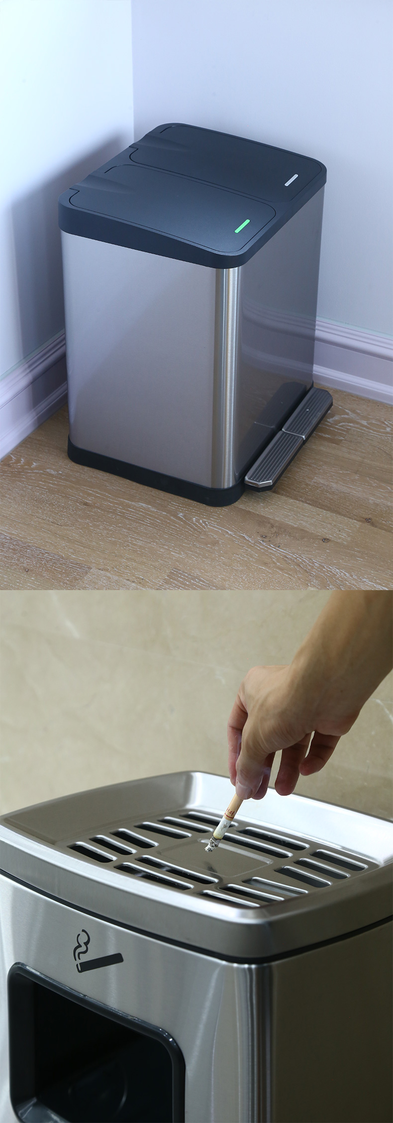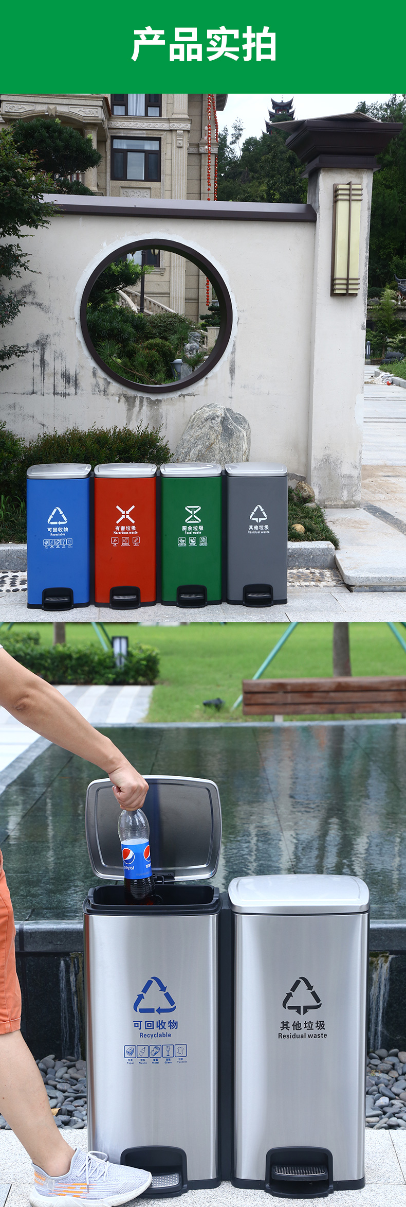 不鏽鋼腳踏式分類垃圾桶學校商場辦公樓家用大帶蓋公共電梯口乾溼