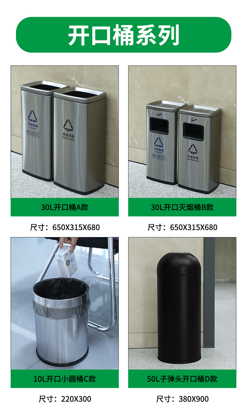 花園小區圓形不鏽鋼分類垃圾桶廢舊電池分類回收不鏽鋼垃圾桶