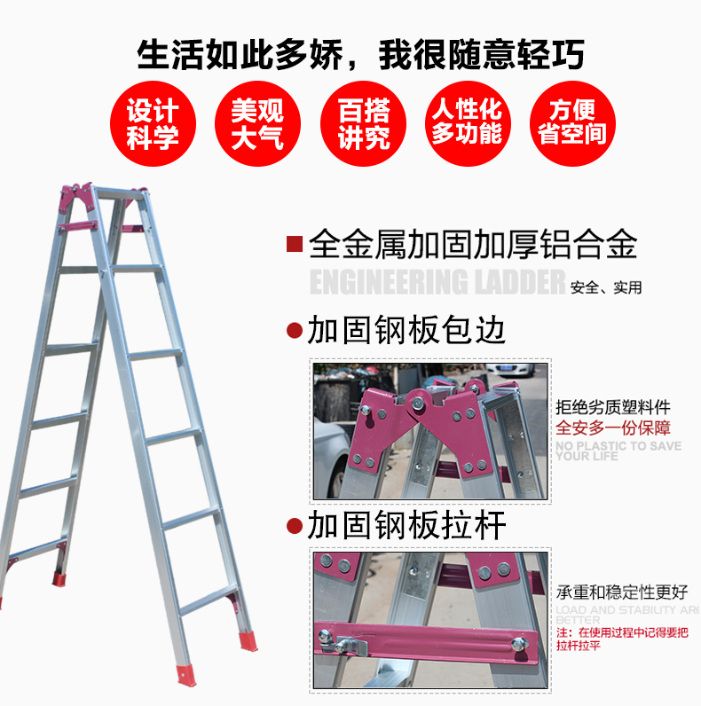 家用折疊壹字直梯伸縮爬梯樓梯合梯梯子