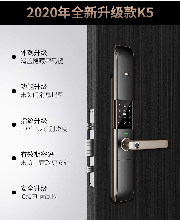 TCL木門入戶門指紋鎖防盜門鎖智能鎖電子鎖刷防盜鎖家用密碼鎖K6V