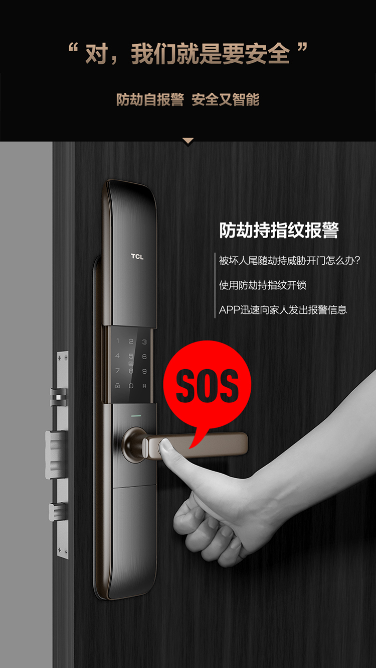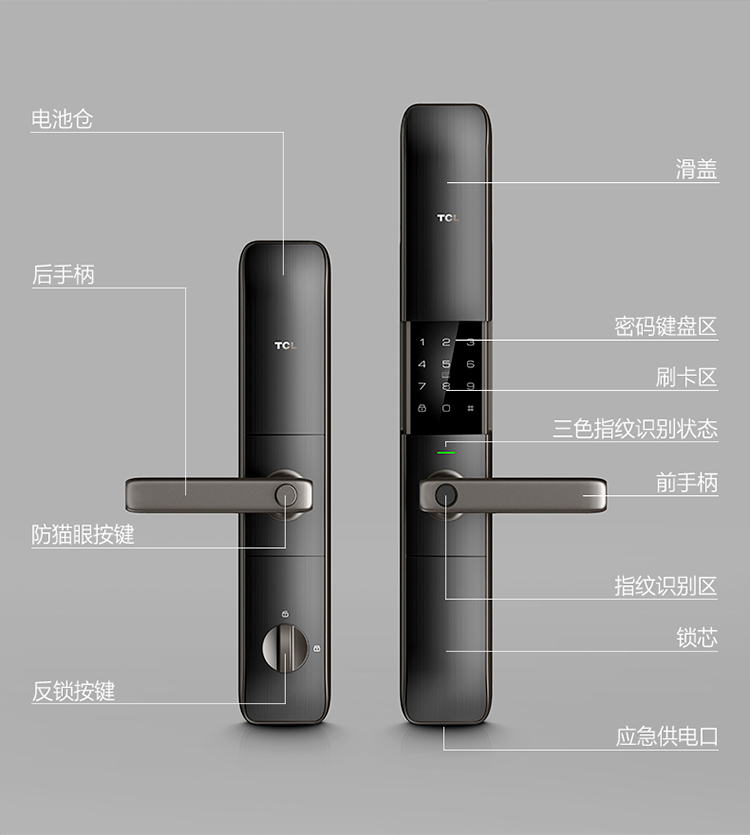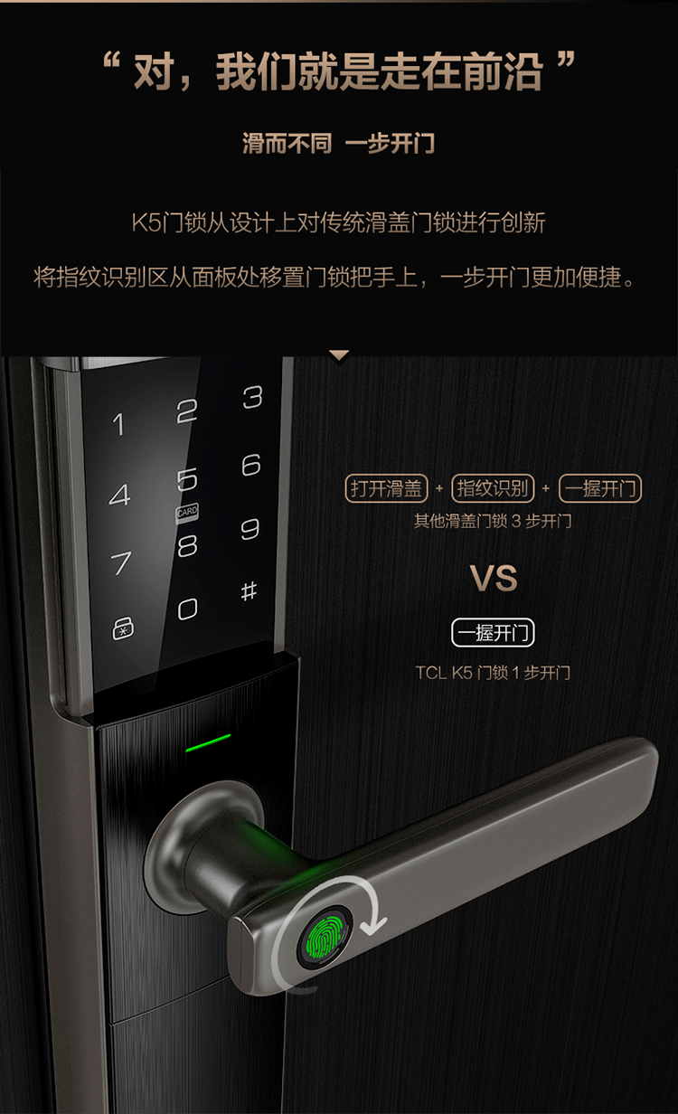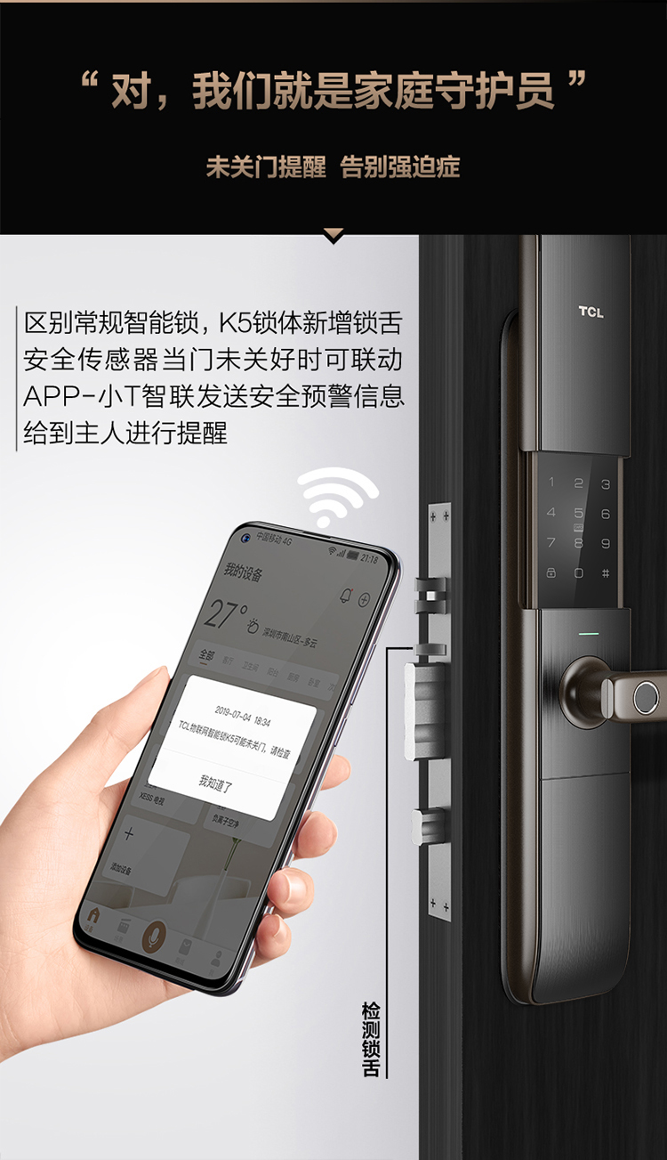 TCL滑蓋指紋鎖智能鎖家用防盜門鎖 密碼電子鎖 聯網未關門提醒 K5
