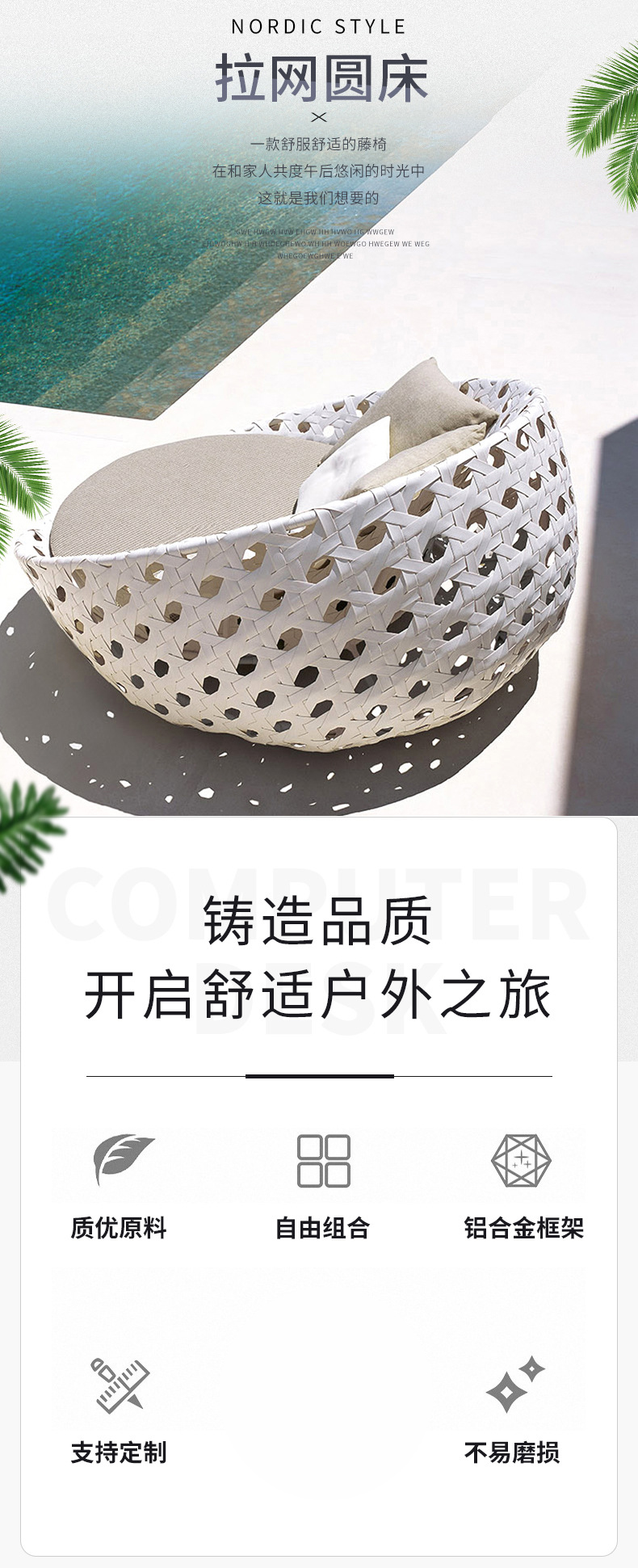 北歐戶外休閒拉網圓牀藤椅傢俱防曬定製傢俱繩編沙發室外雙人位