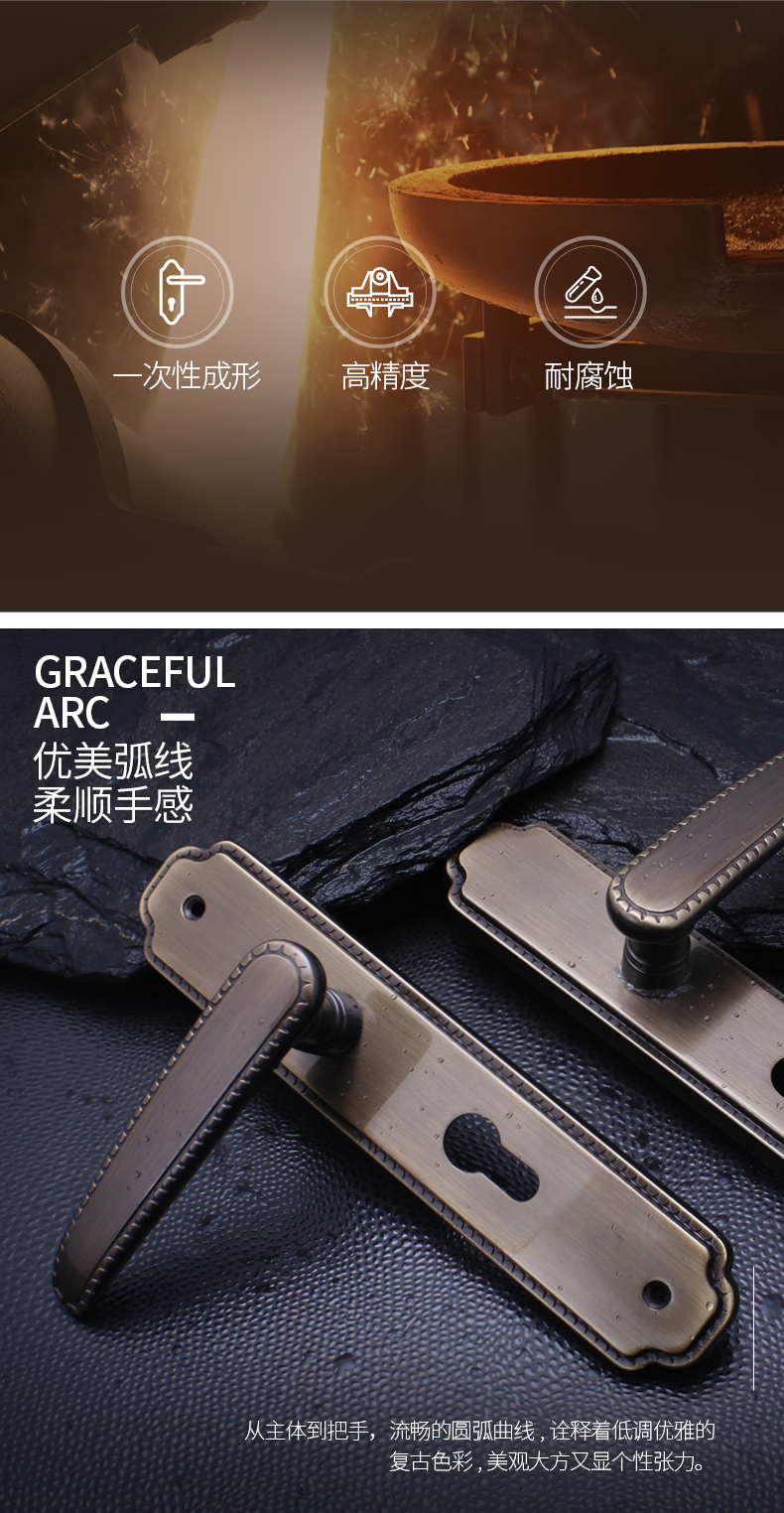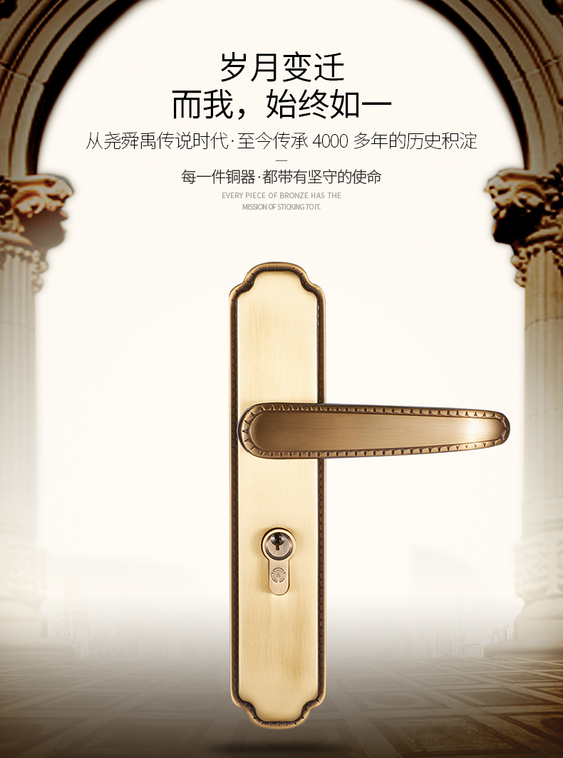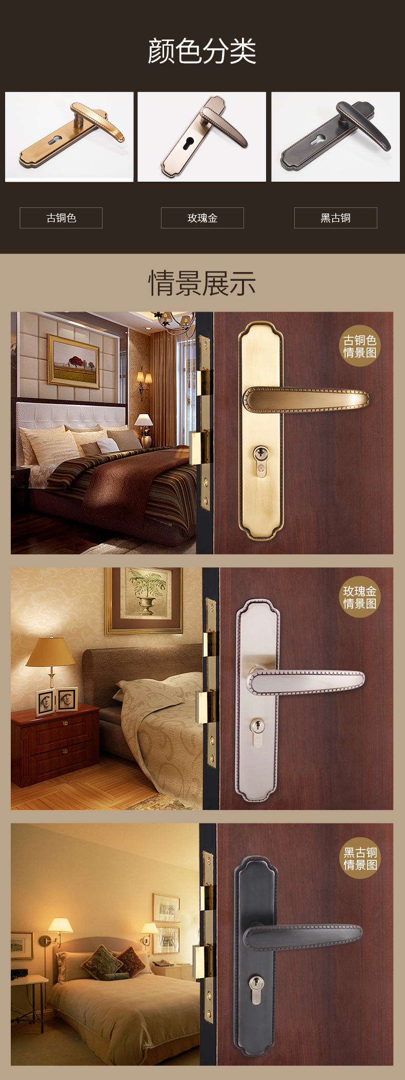 模帝樂防盜門鎖歐式全銅大門鎖復古把手面板通用型室內家用套裝