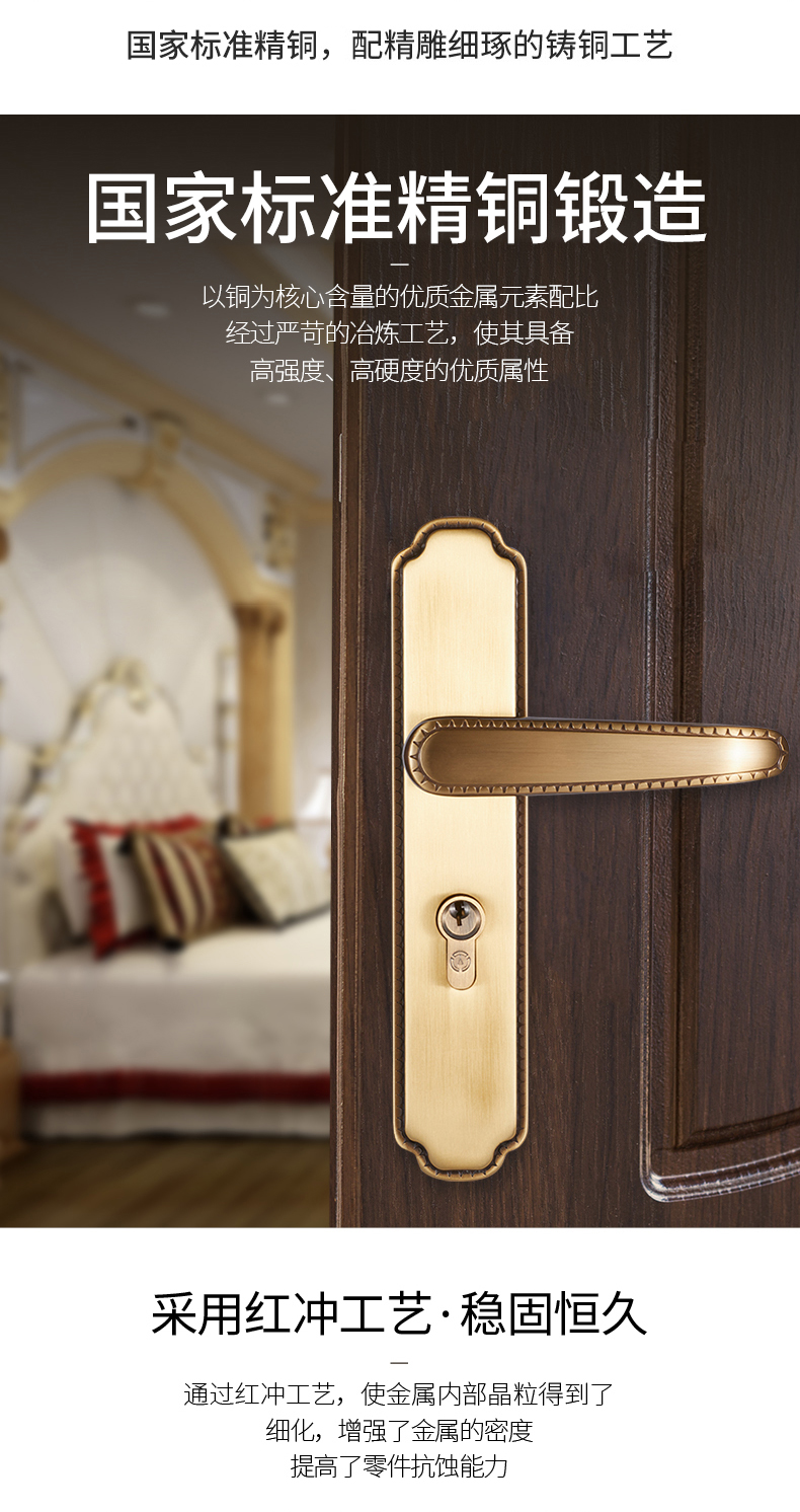 老銅匠銅鎖歐美式簡約田園房門鎖全銅門鎖室外大門鎖歐式門把手