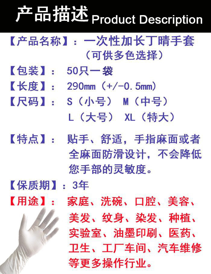 加長加厚白色壹次性乳膠手套