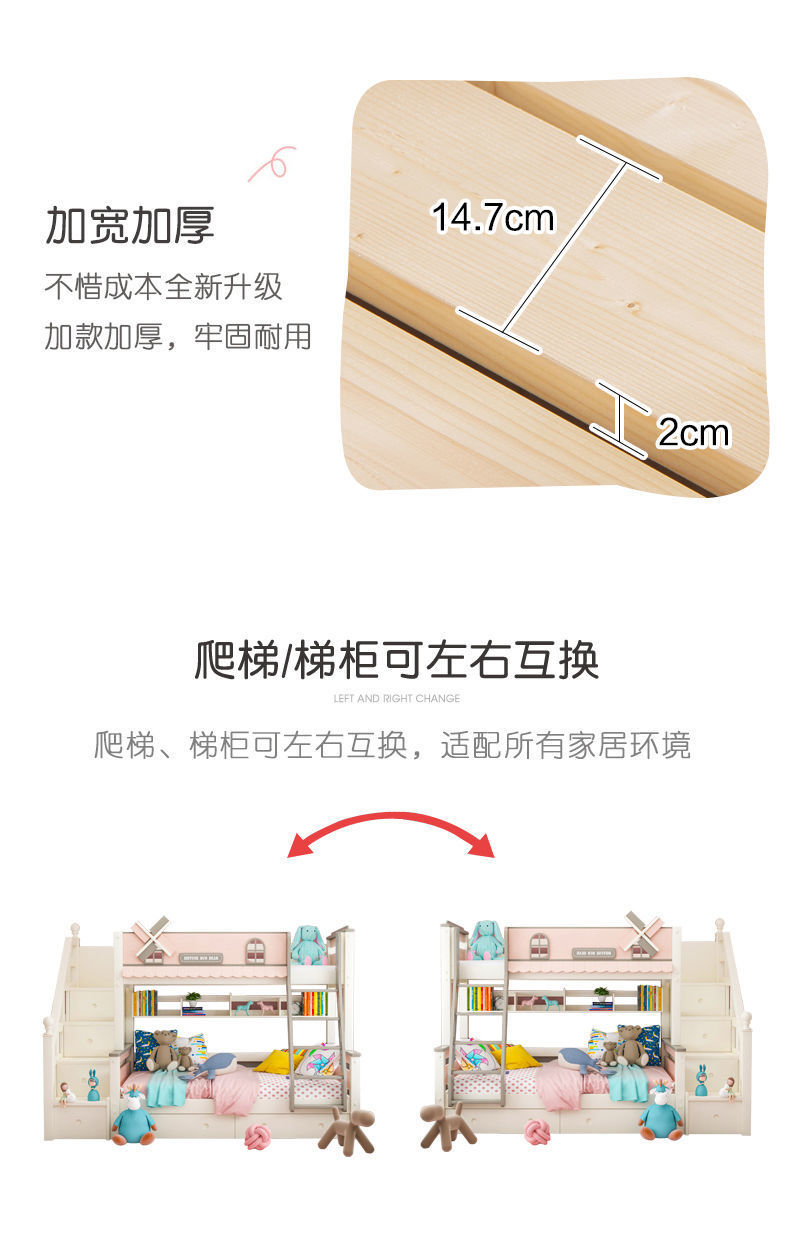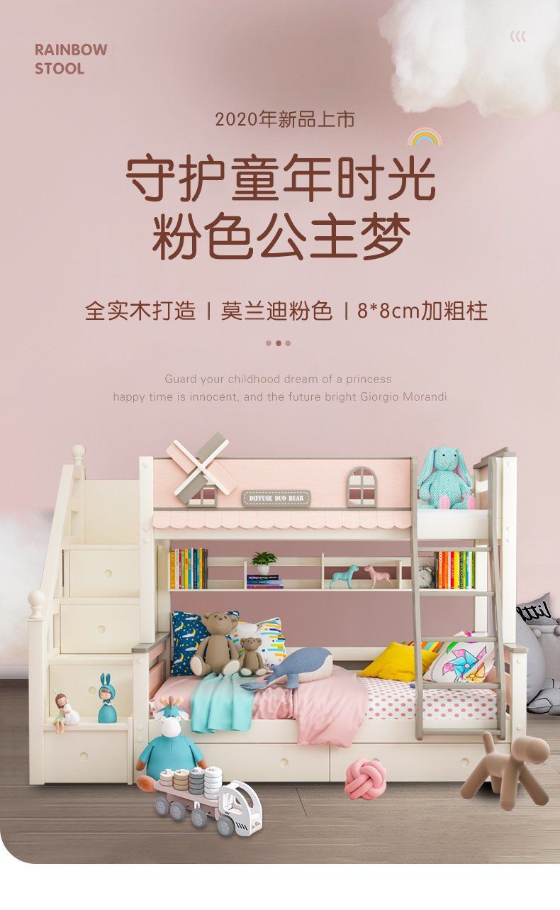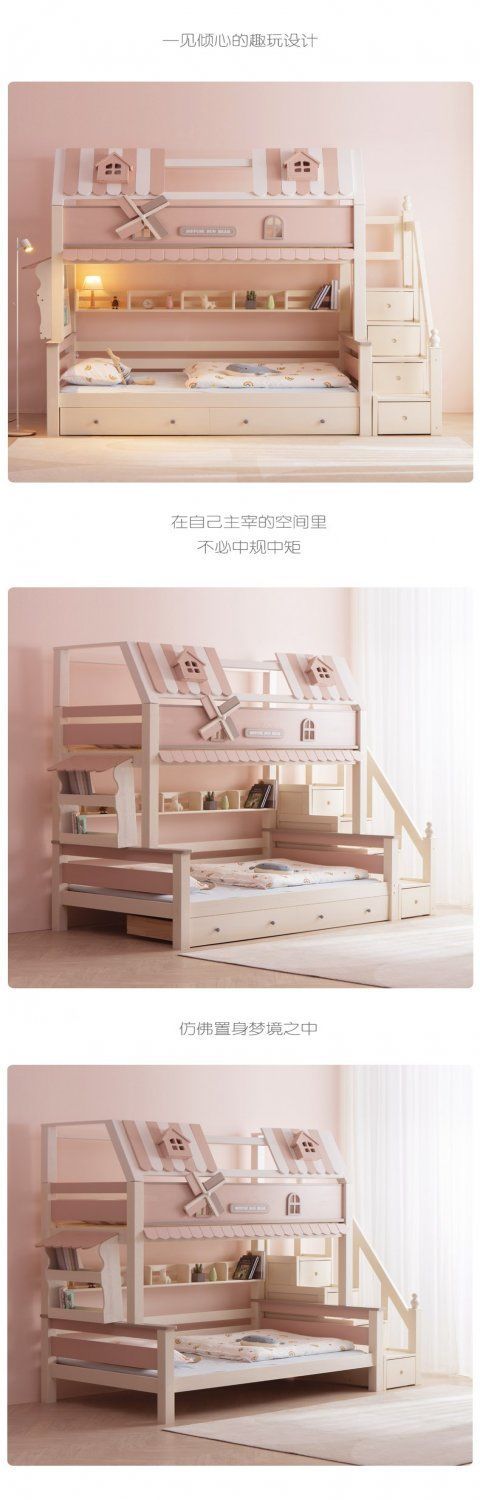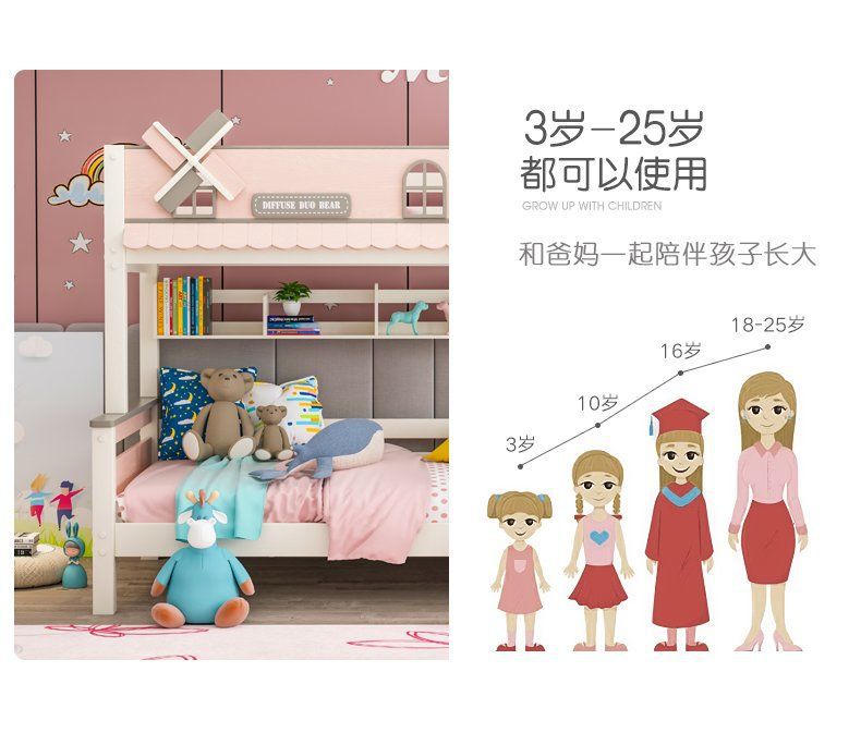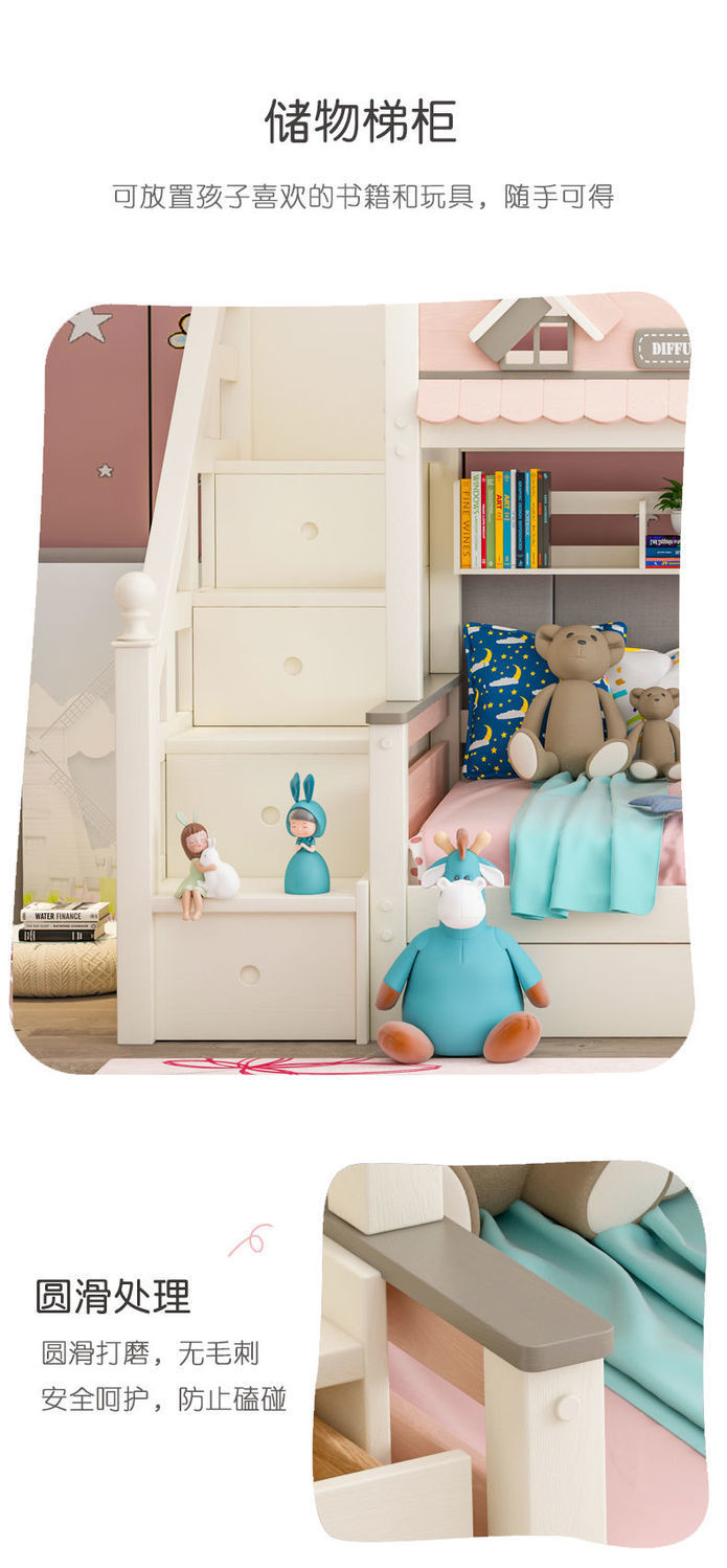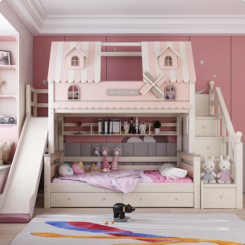 粉色公主牀上下牀風車子母牀城堡全實木高低上下鋪雙層女孩兒童牀