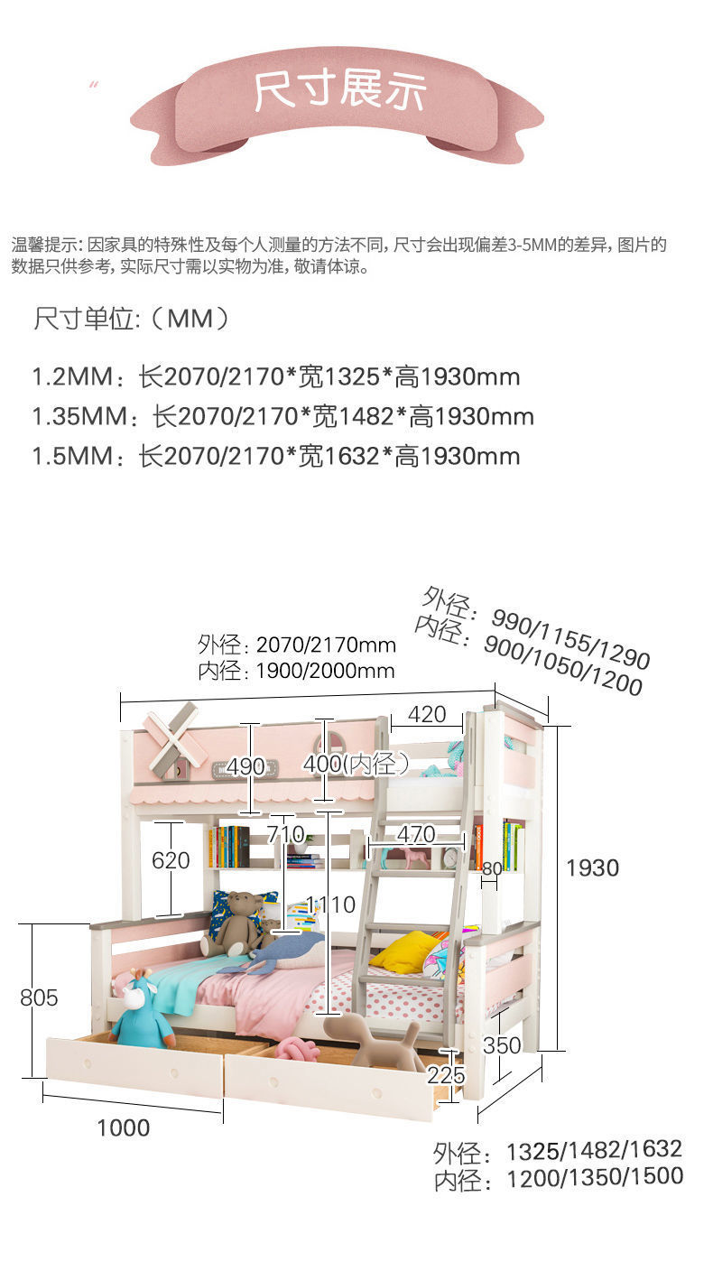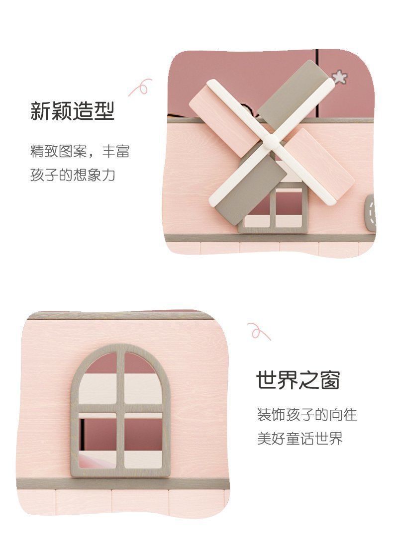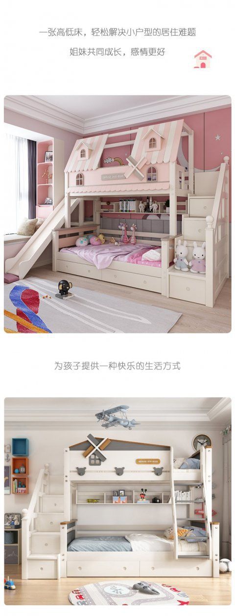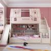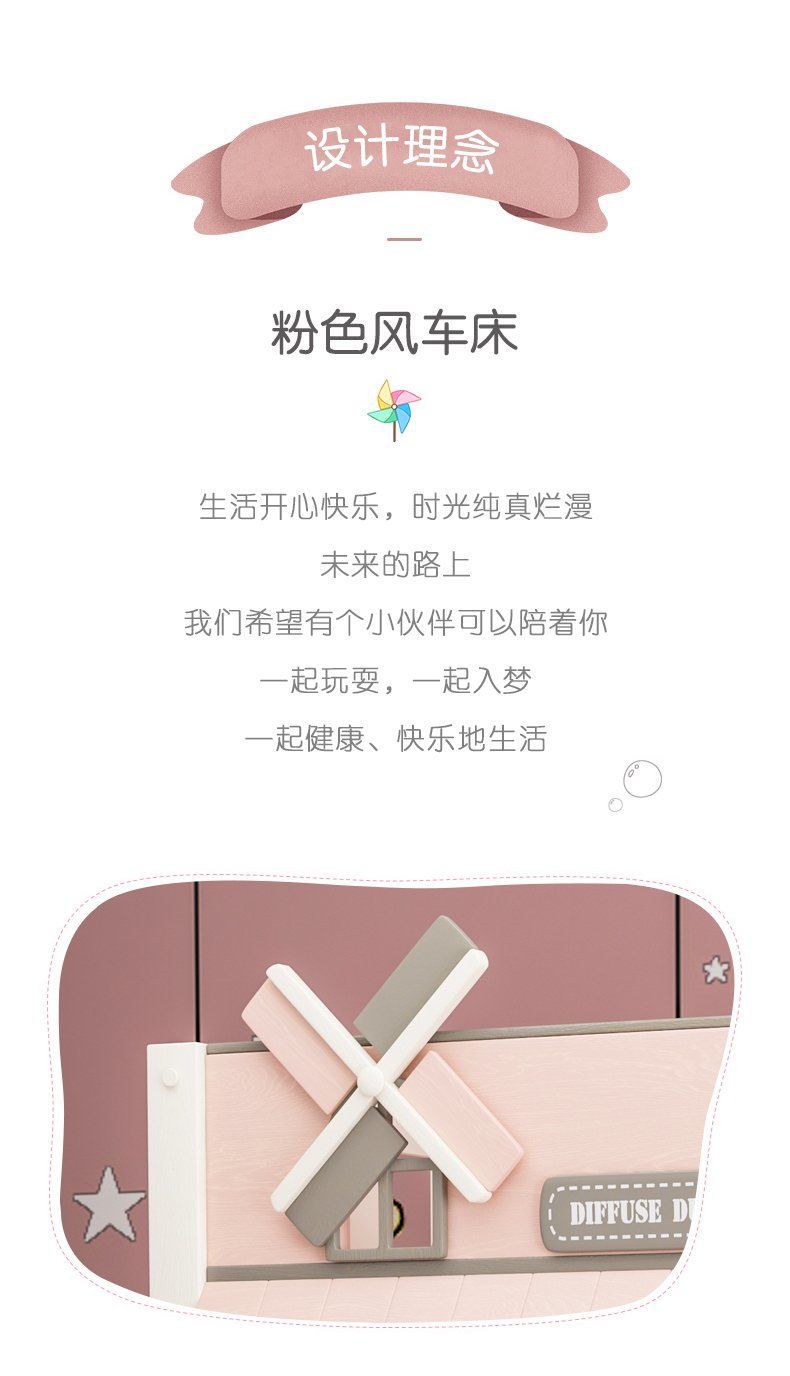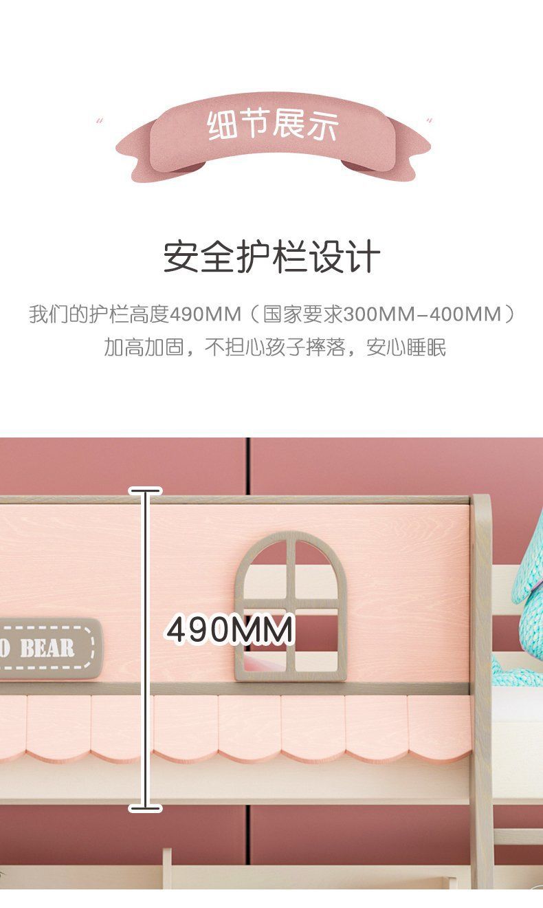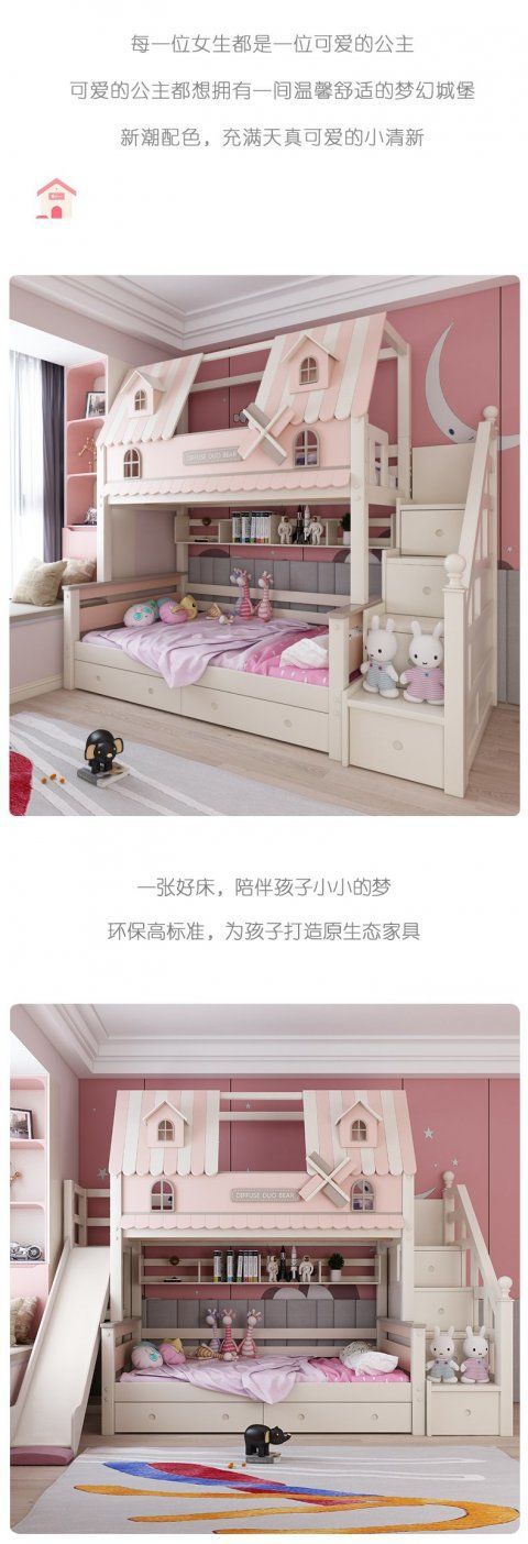 粉色公主牀上下牀風車子母牀城堡全實木高低上下鋪雙層女孩兒童牀