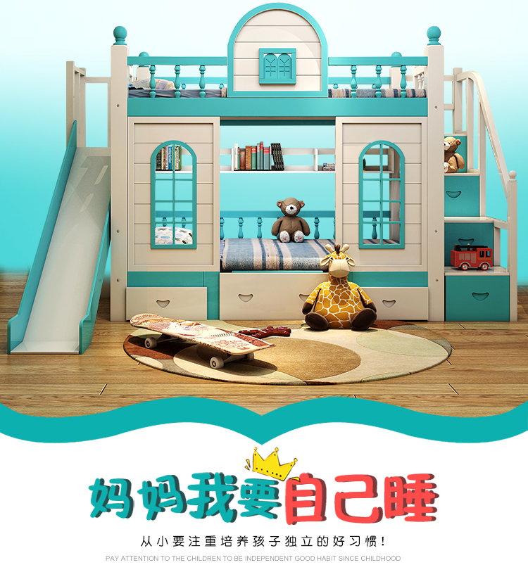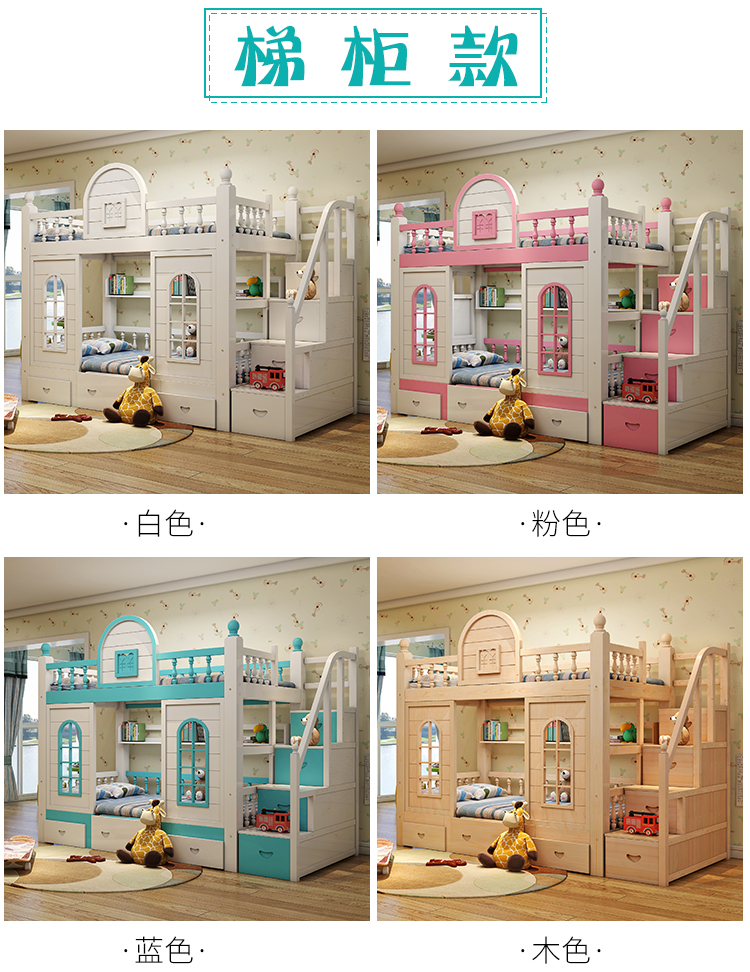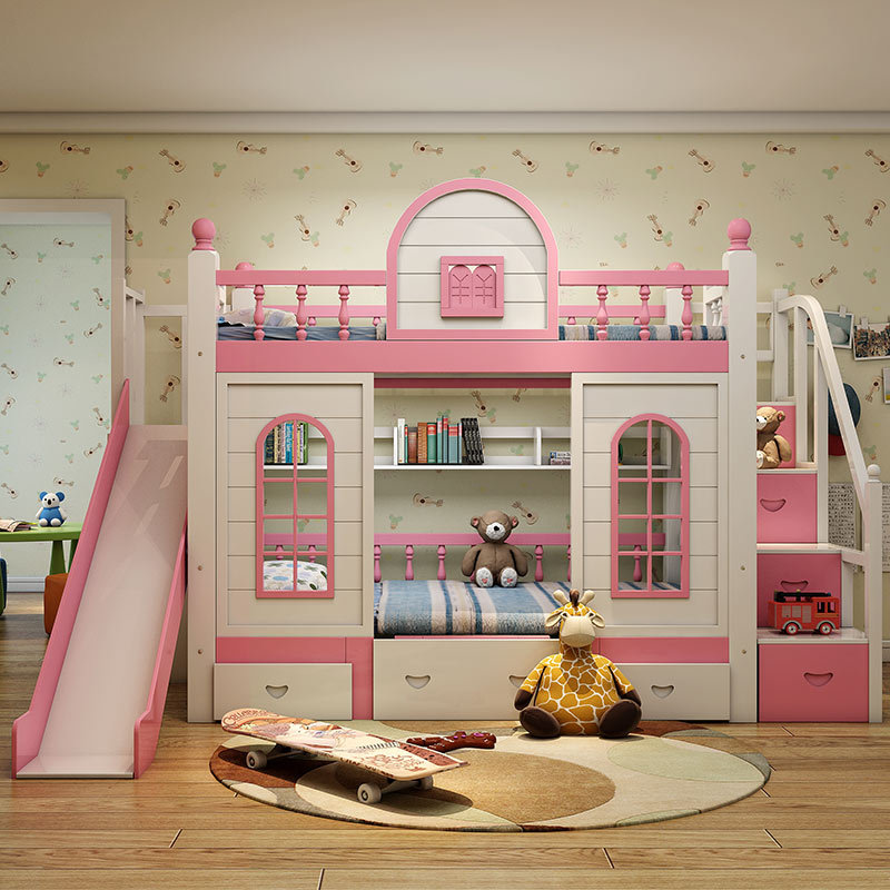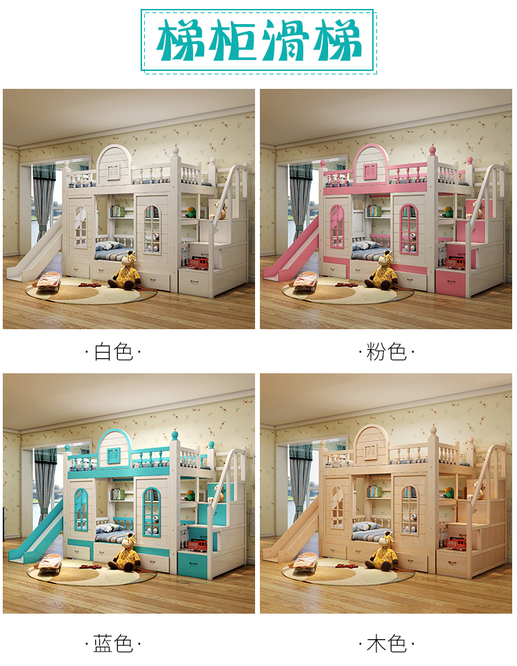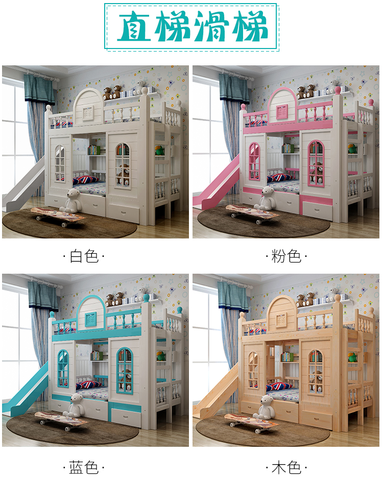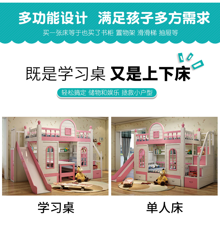多功能兒童上下牀雙層牀高低子母牀男孩女孩公主牀城堡滑梯牀實木