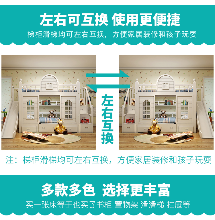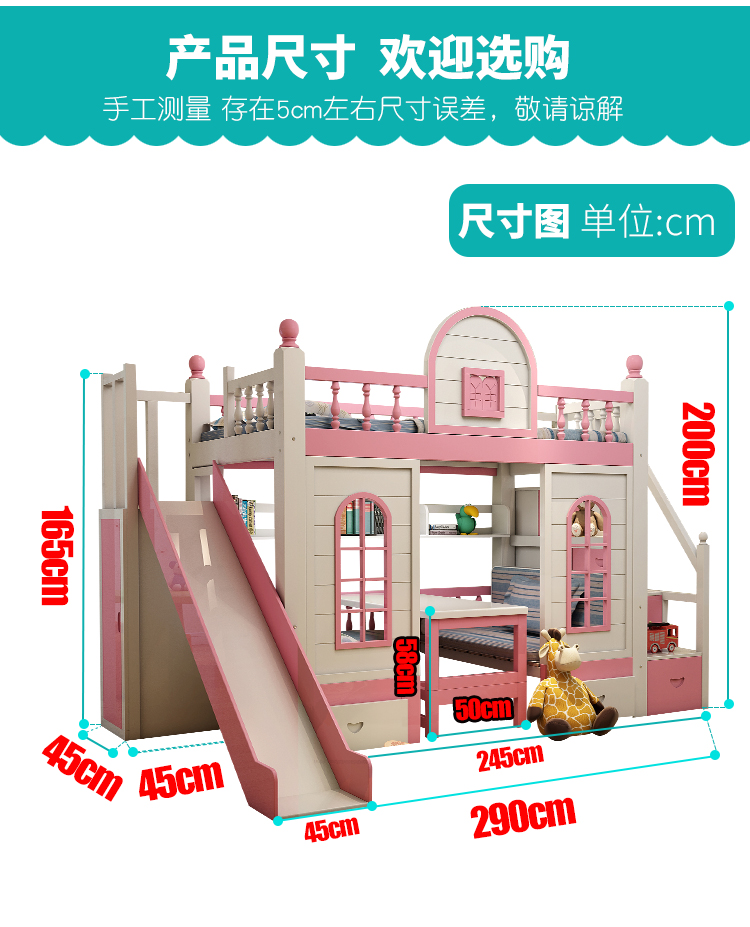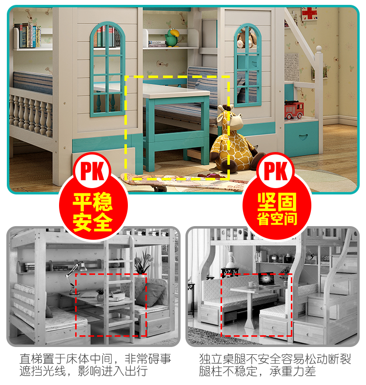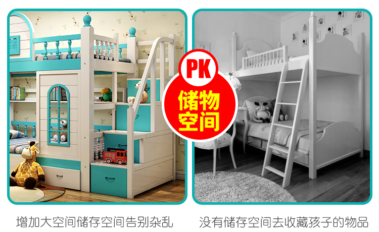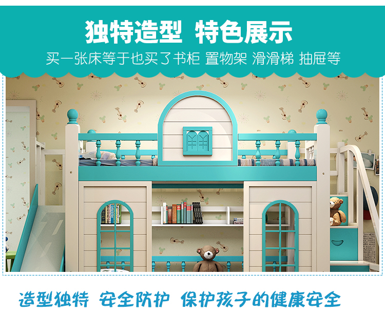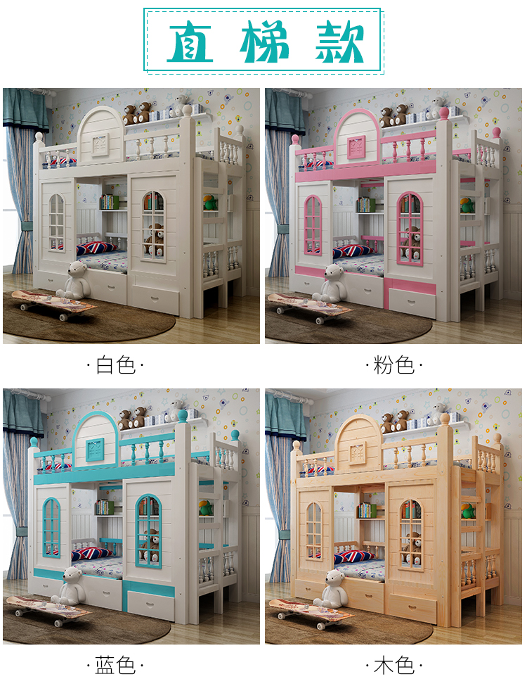 多功能兒童上下牀雙層牀高低子母牀男孩女孩公主牀城堡滑梯牀實木