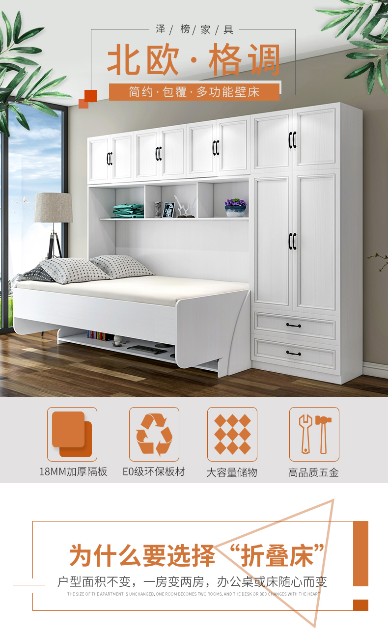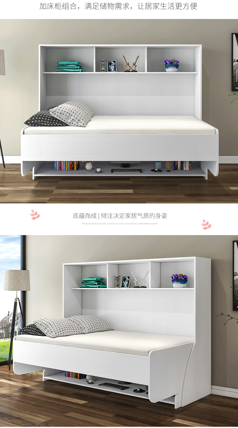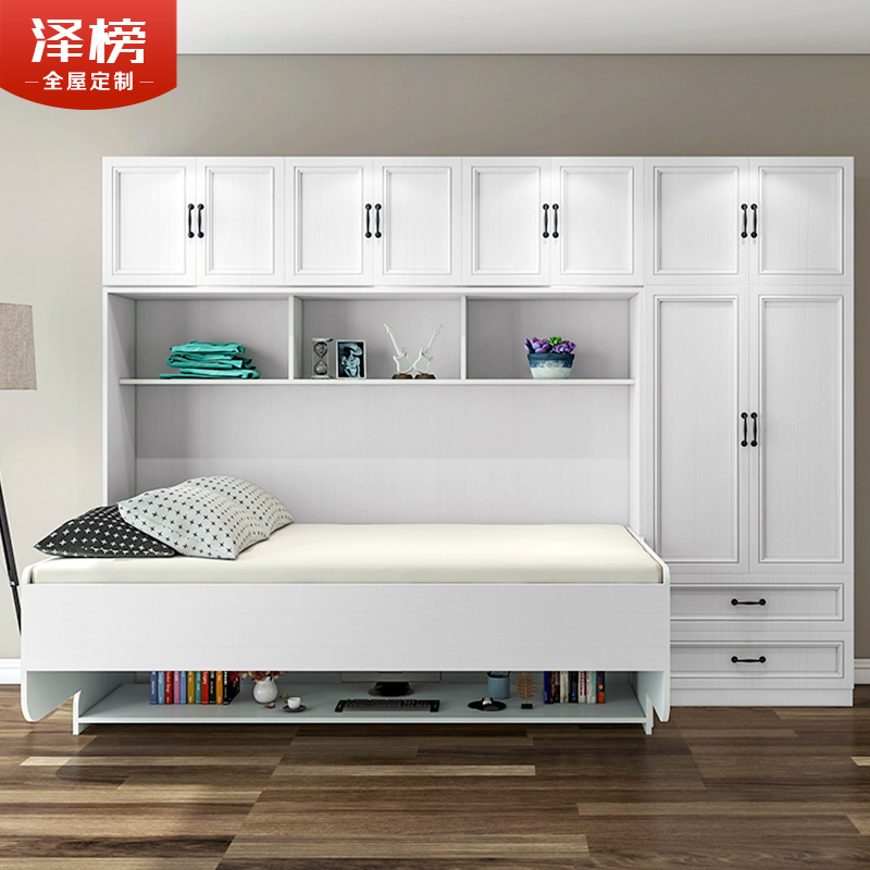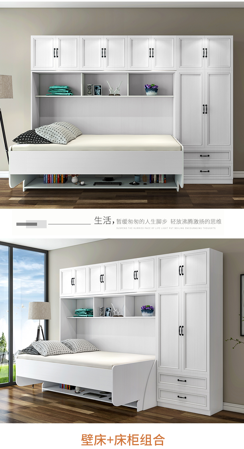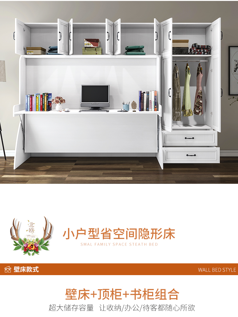 北歐一體式書桌衣櫃鋼琴隱形牀組合家用多功能摺疊牀側翻單人壁牀
