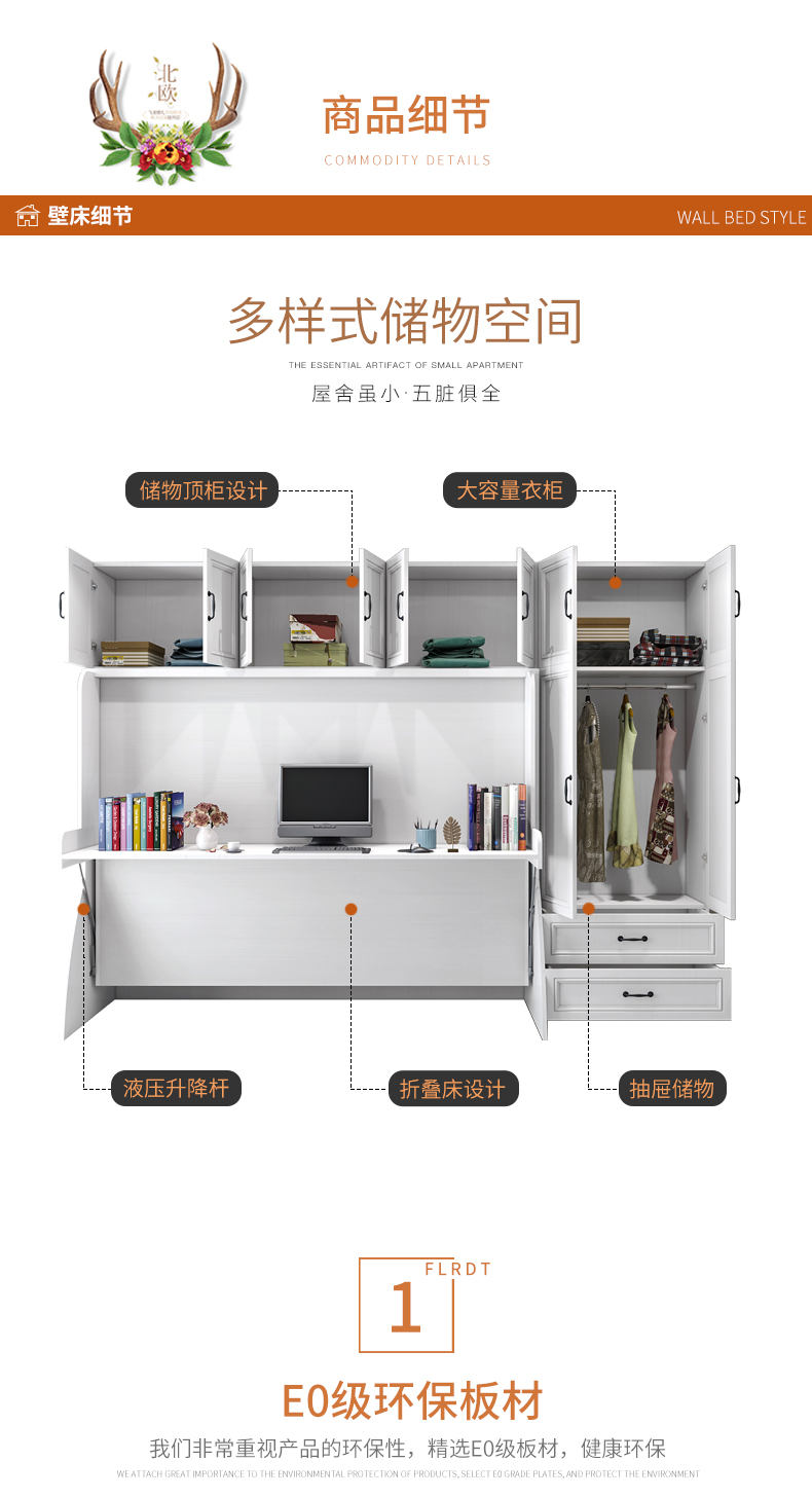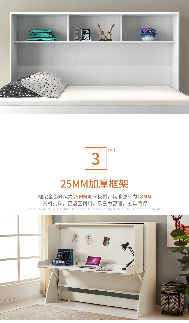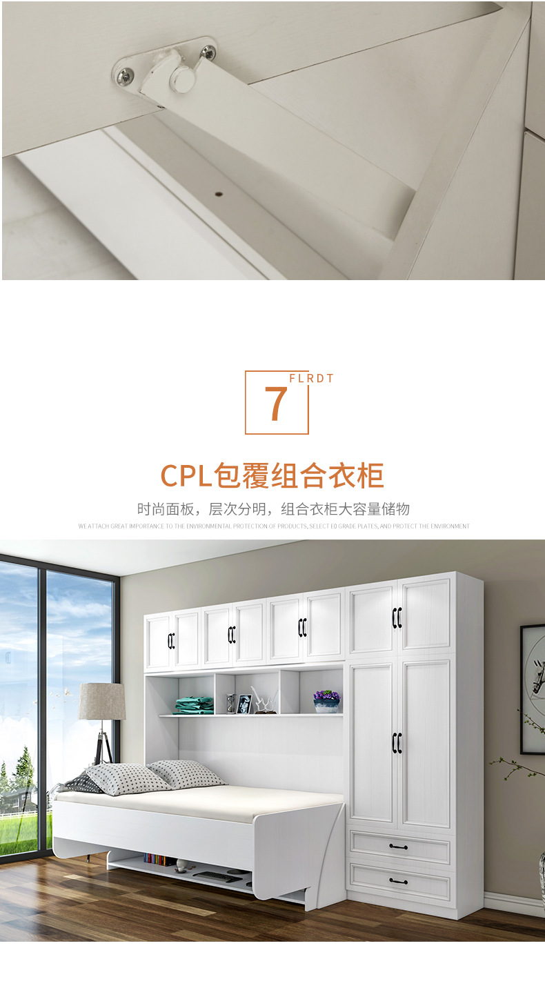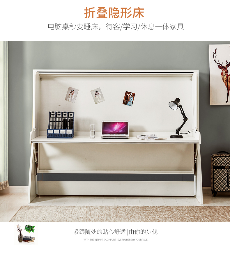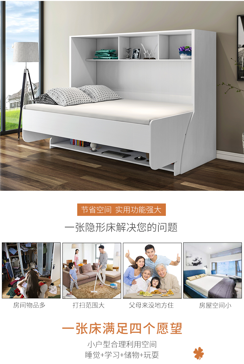 北歐一體式書桌衣櫃鋼琴隱形牀組合家用多功能摺疊牀側翻單人壁牀