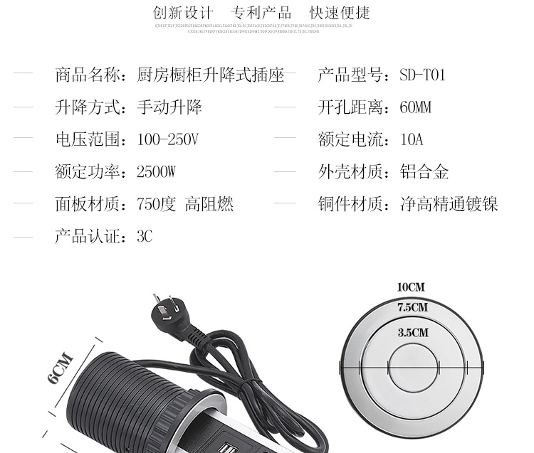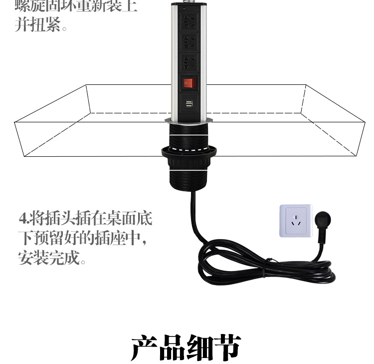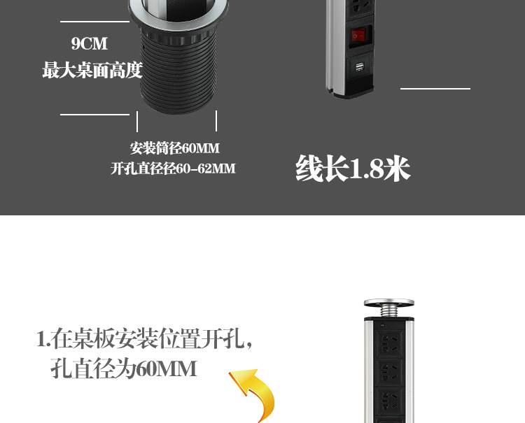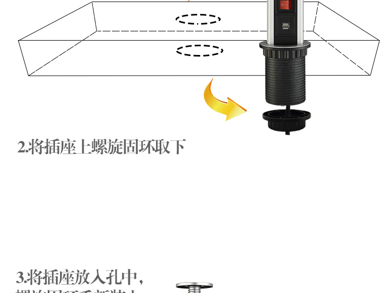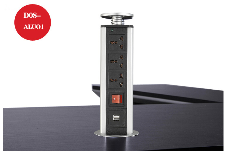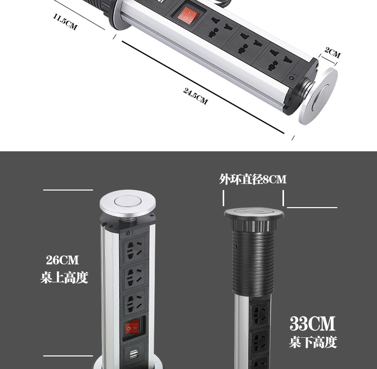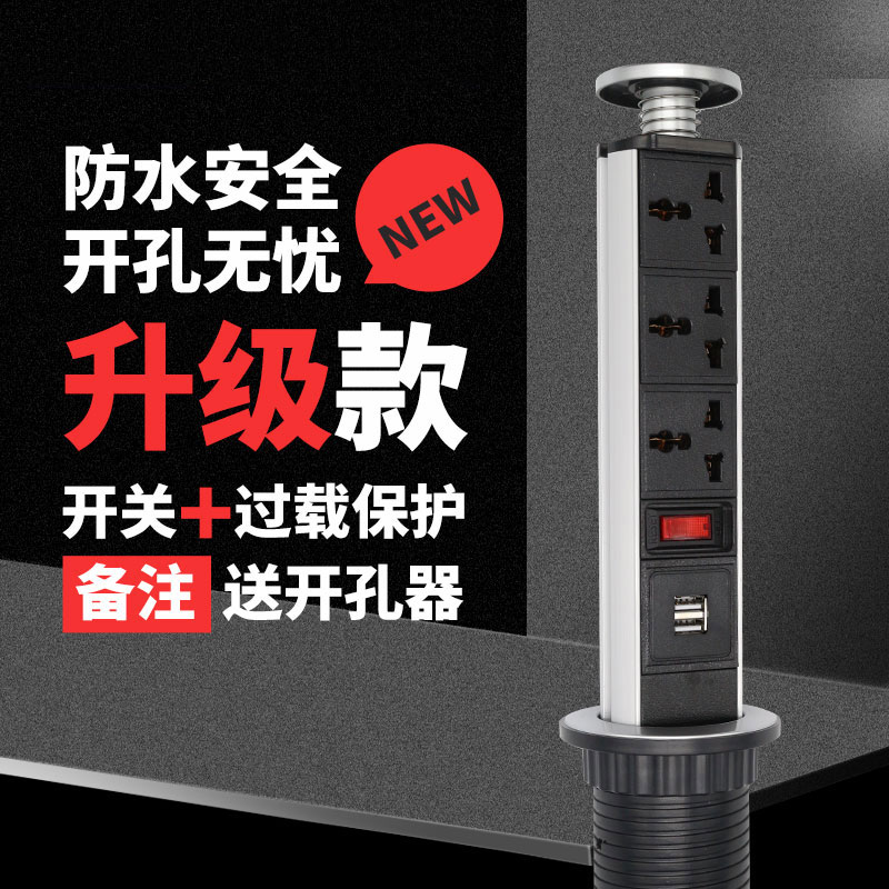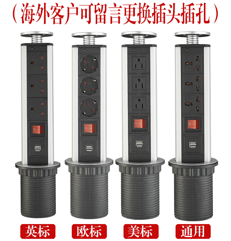 升降插座嵌入式中英美歐通用萬能桌面廚房辦公桌島臺排插隱藏式