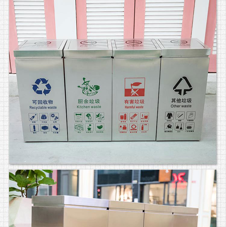 學校戶外分類環保不鏽鋼垃圾桶公園環衛分類果皮箱金屬資源回收箱