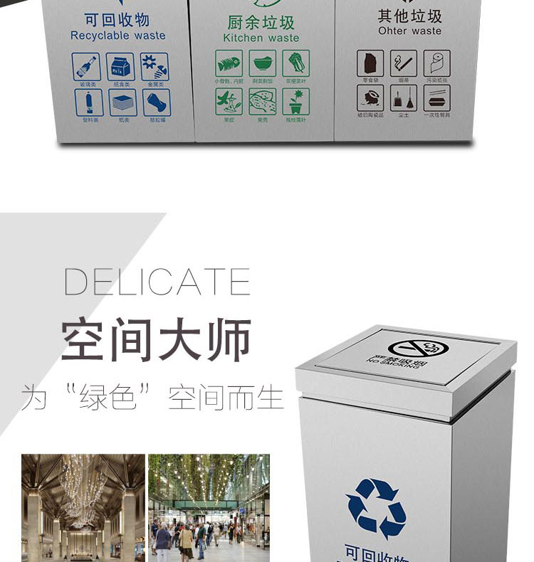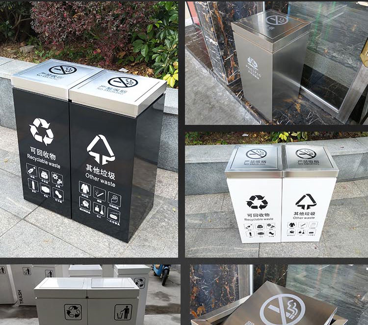 不鏽鋼分類垃圾桶大堂帶蓋商用物業銀行醫院單位鐵皮大號公共場合