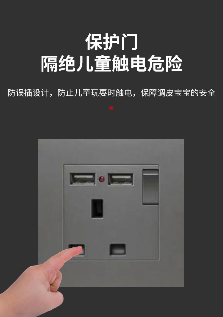 香港澳版13A帶USB充電英式英標電掣開関插座英規多孔灰色燈制插蘇