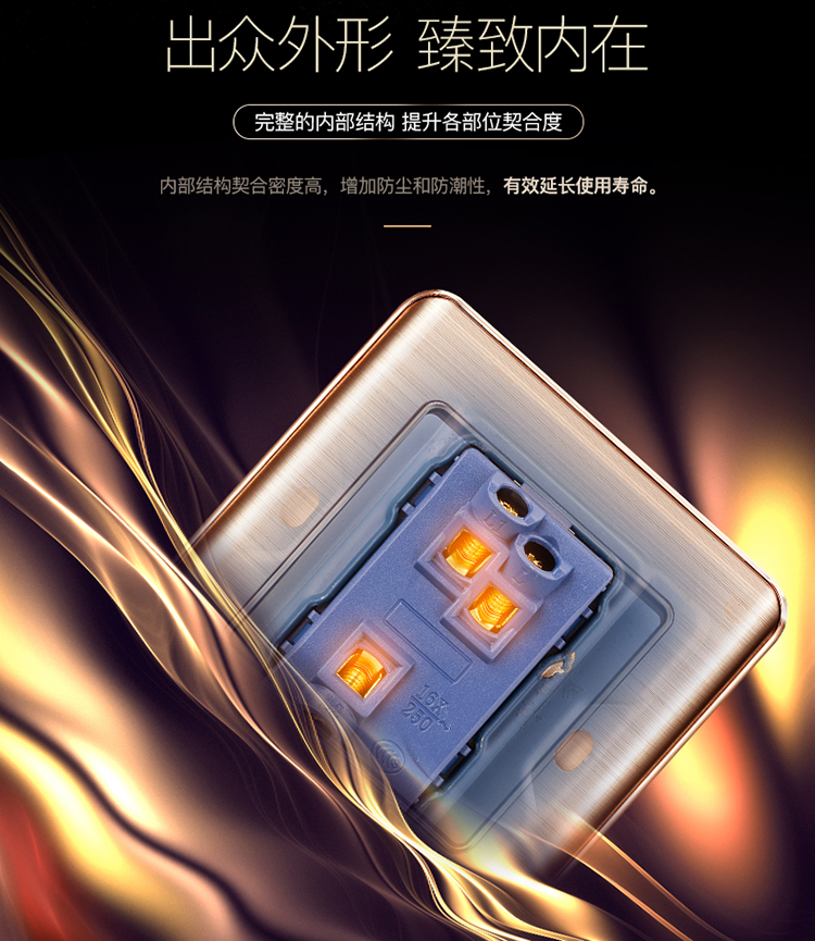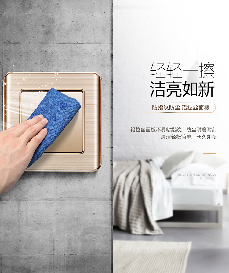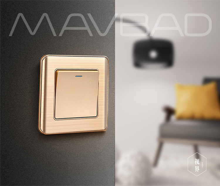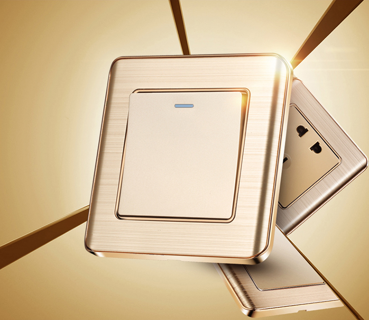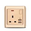 86型13A英標港版電制燈制開關插座蘇英式家用帶USB暗裝拉絲金面板