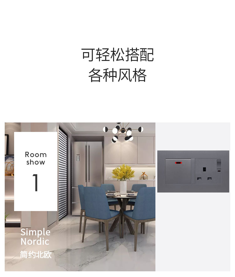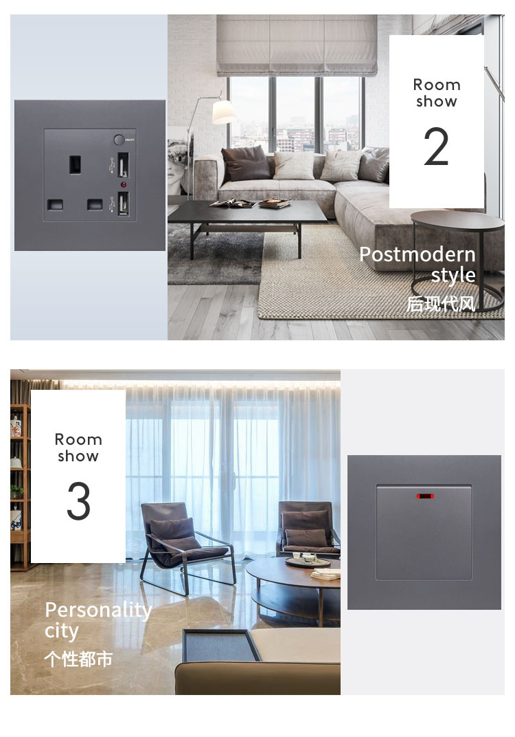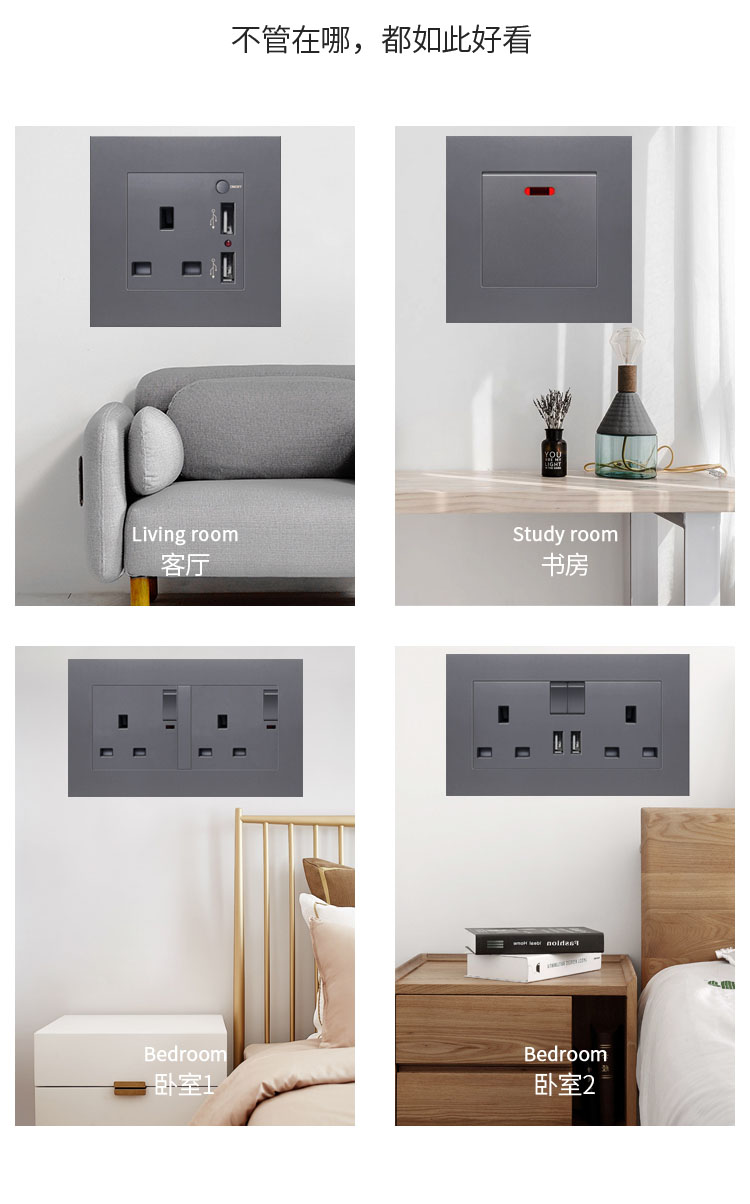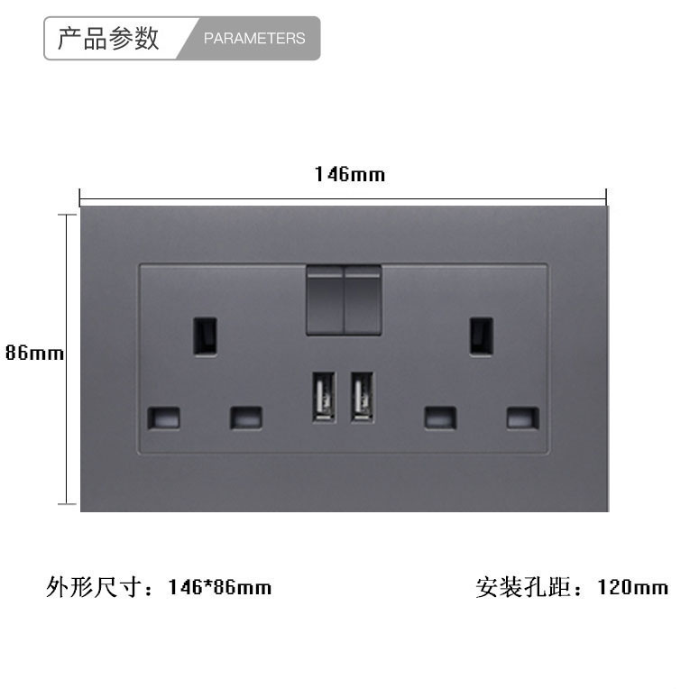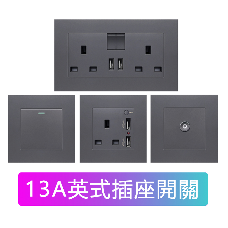 86型13A灰色英式英標插座面板帶USB充電香港澳門電制開關扦插蘇通