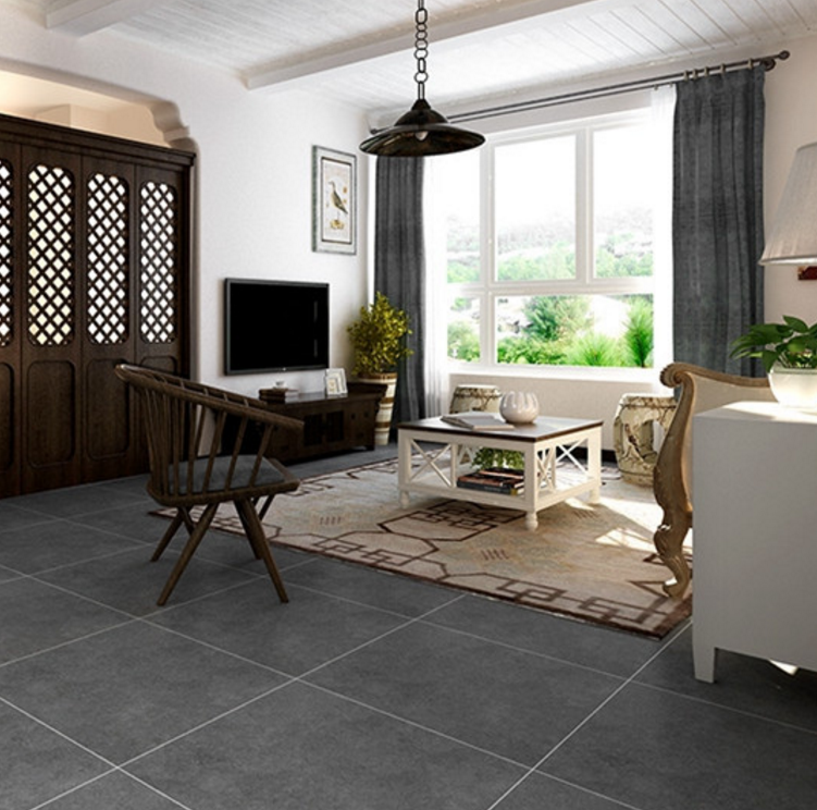 仿古磚露臺庭院防滑地磚600X600客廳啞光瓷磚灰色戶外粗糙火燒板