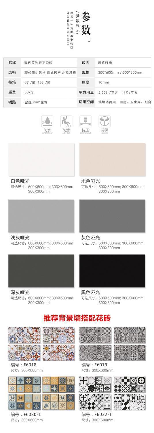 佛山瓷磚批發300x600小白磚廚房陽臺衛生間平面啞光牆磚格子磚