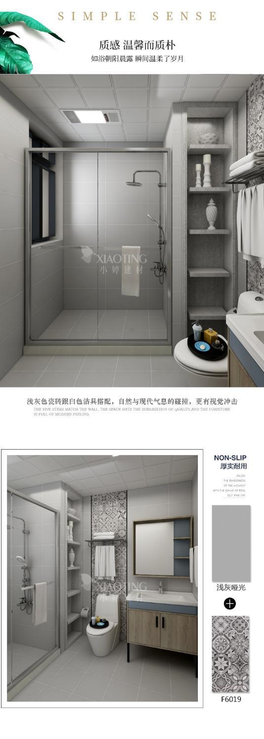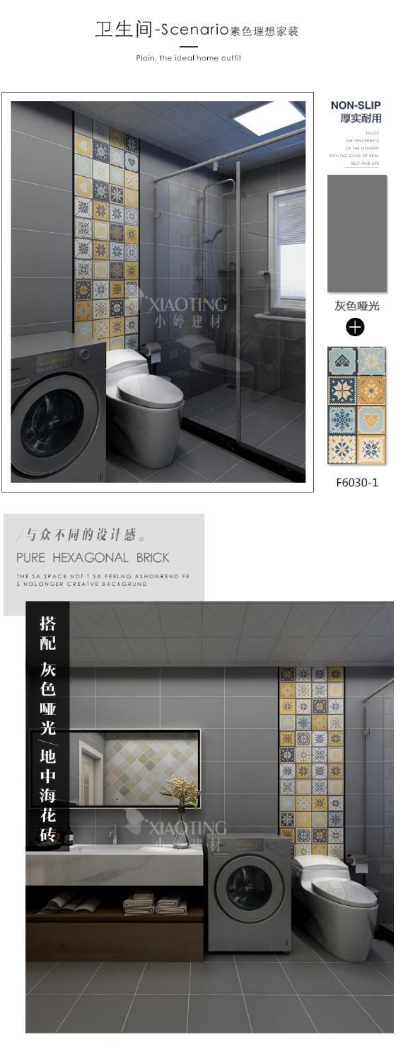 水泥灰瓷磚600x600廚房衛生間防滑地磚北歐廁所浴室啞光牆磚30x60