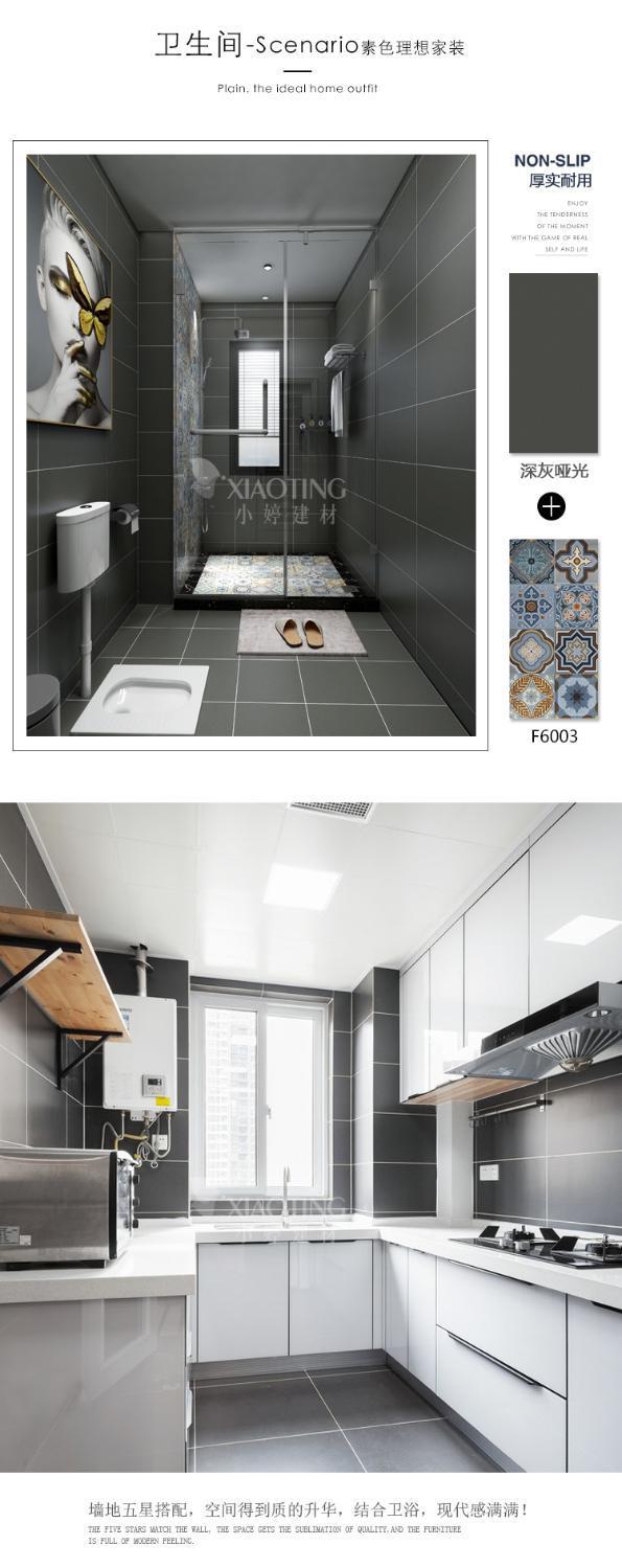 純色黑白灰瓷磚300x300衛生間地磚陽臺磚廚房防滑磚啞光北歐簡約