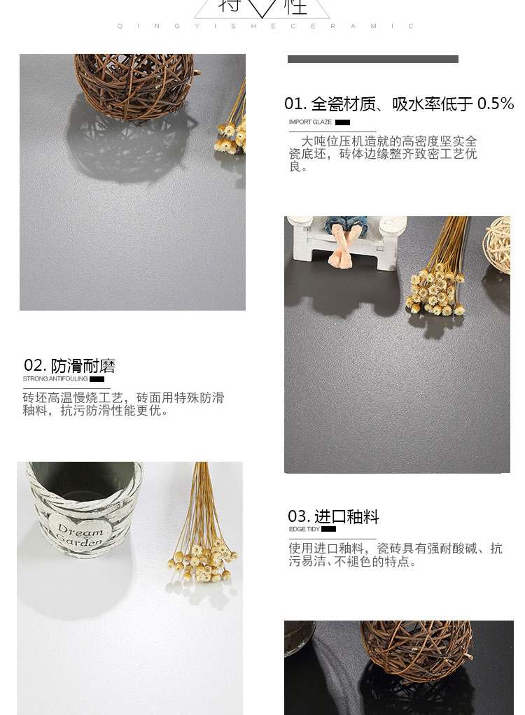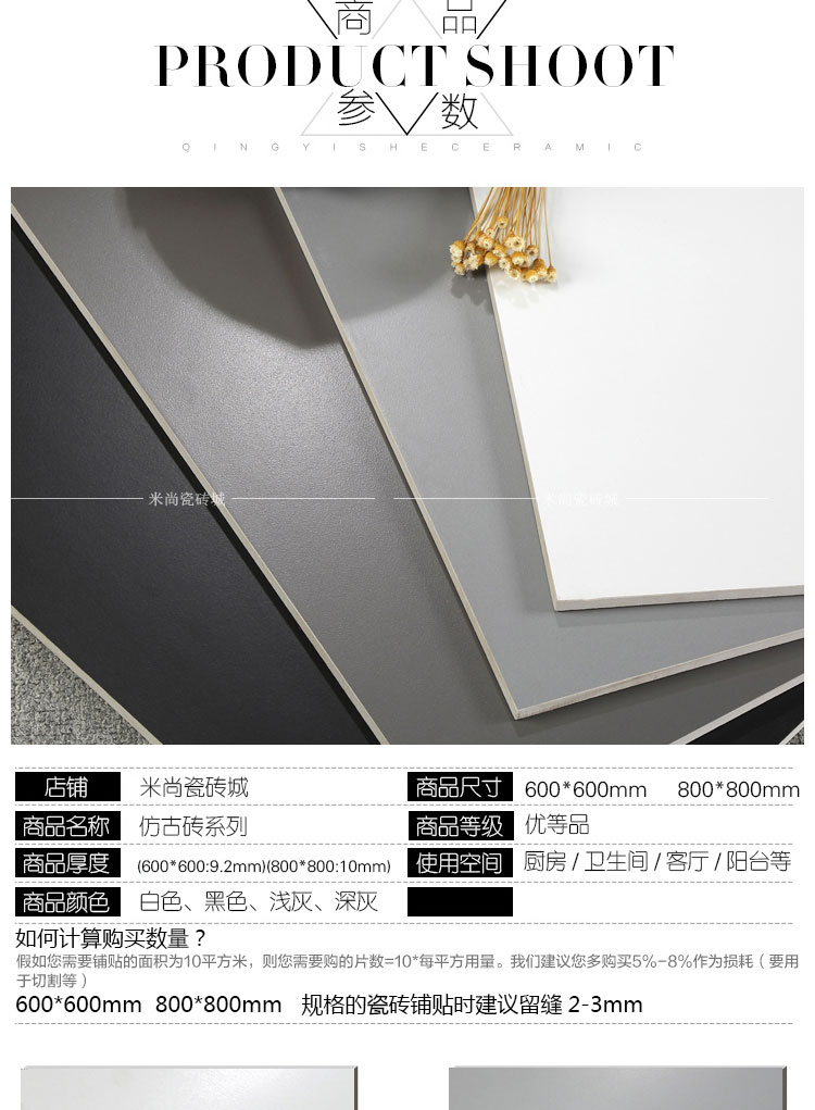 純灰色瓷磚啞光白色黑色300仿古磚600X600地磚800廚房衛生間牆磚