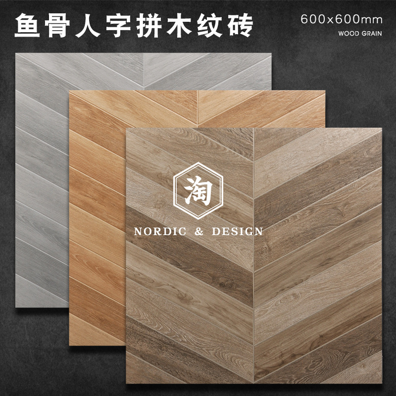 魚骨木紋磚600臥室地板磚 客廳地磚 人字木紋磚北歐客廳餐廳瓷磚