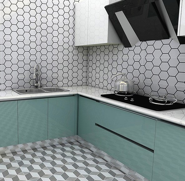 北欧黑白图案内墙砖六角形鱼骨纹浴室卫生间厨房墙砖INS立体瓷砖