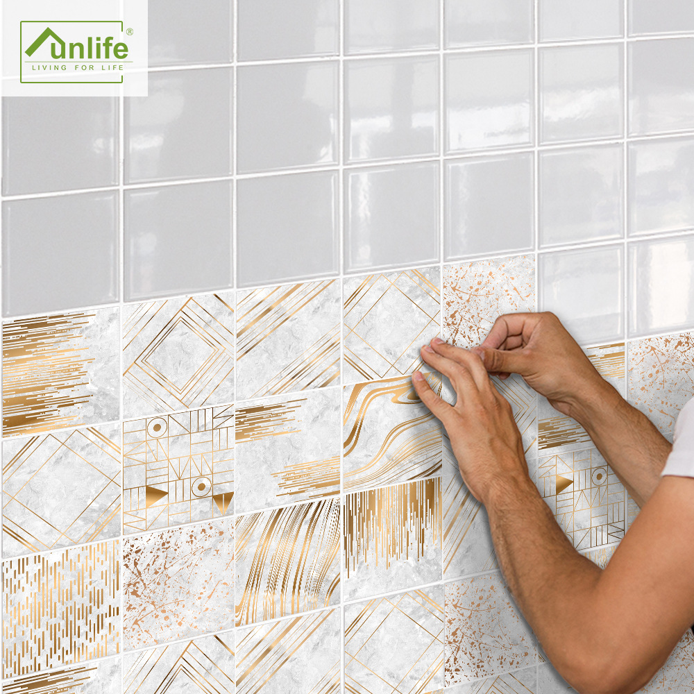 Funlife 防滑防水大理石瓷磚貼浴室幾何金屬牆貼牆紙可清洗TS084