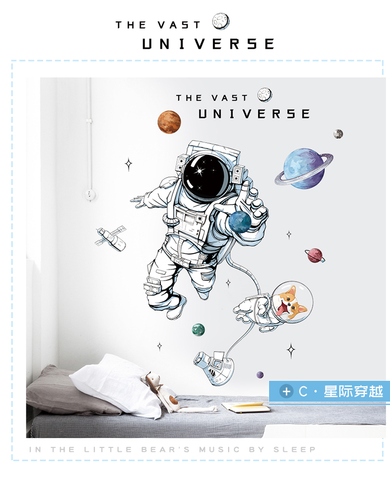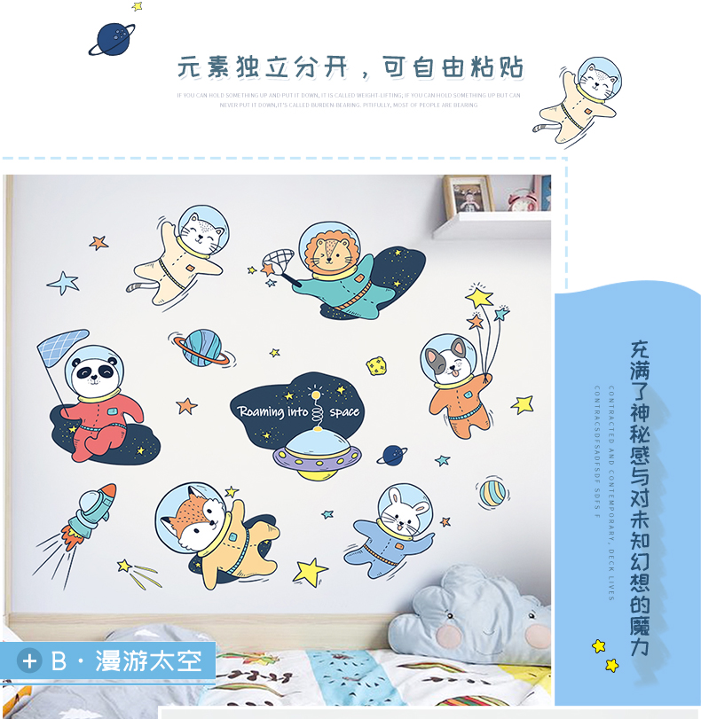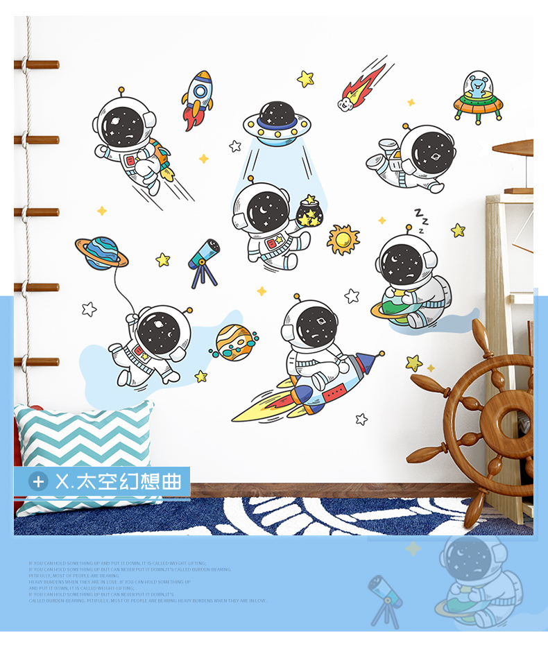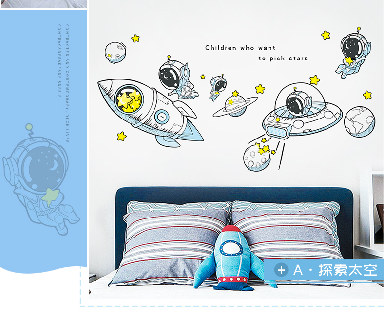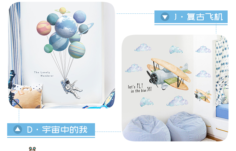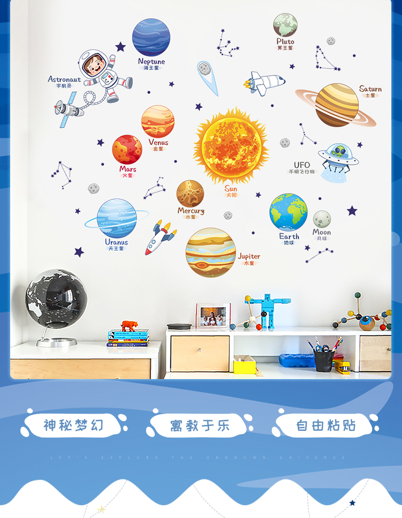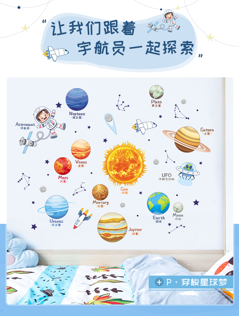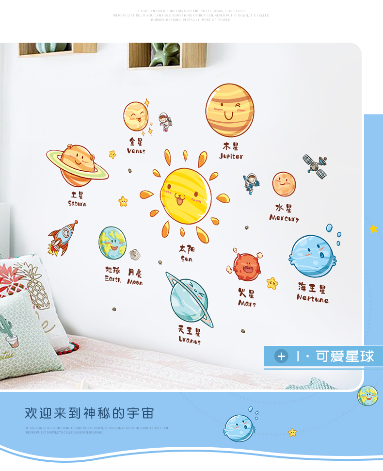 兒童房間佈置背景牆紙自粘牆面星球貼紙牀頭裝飾創意個性太空貼畫