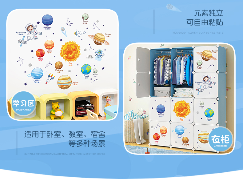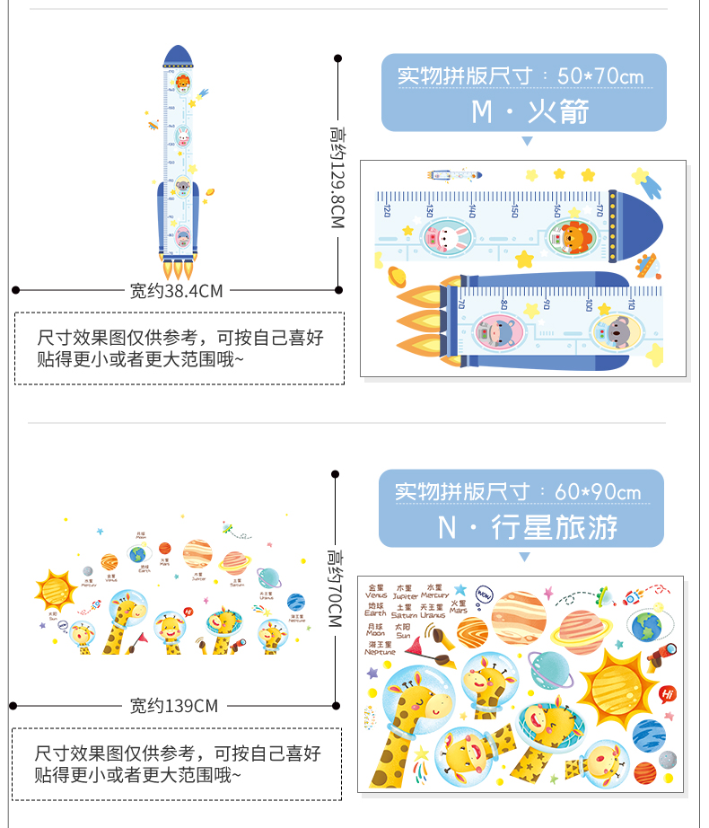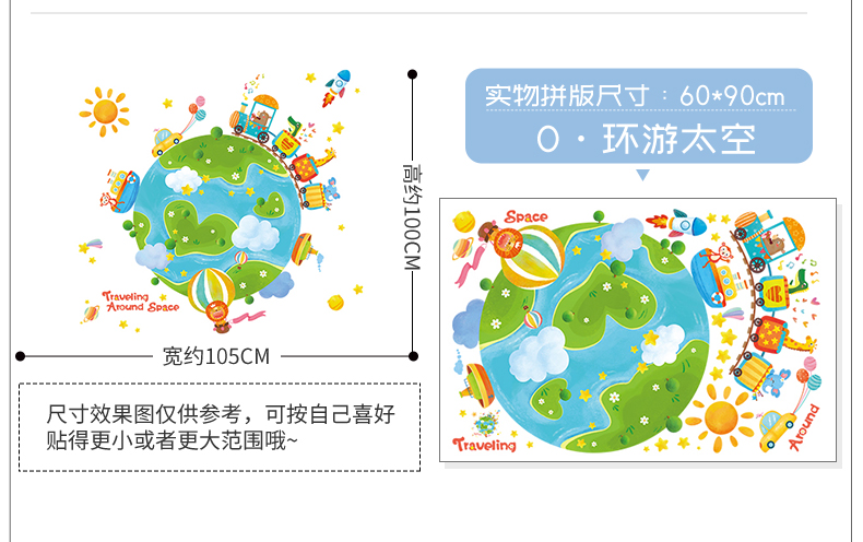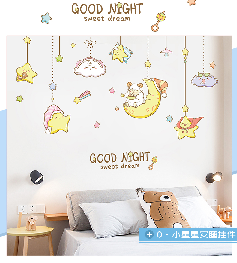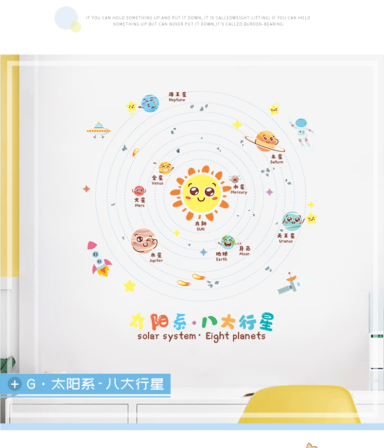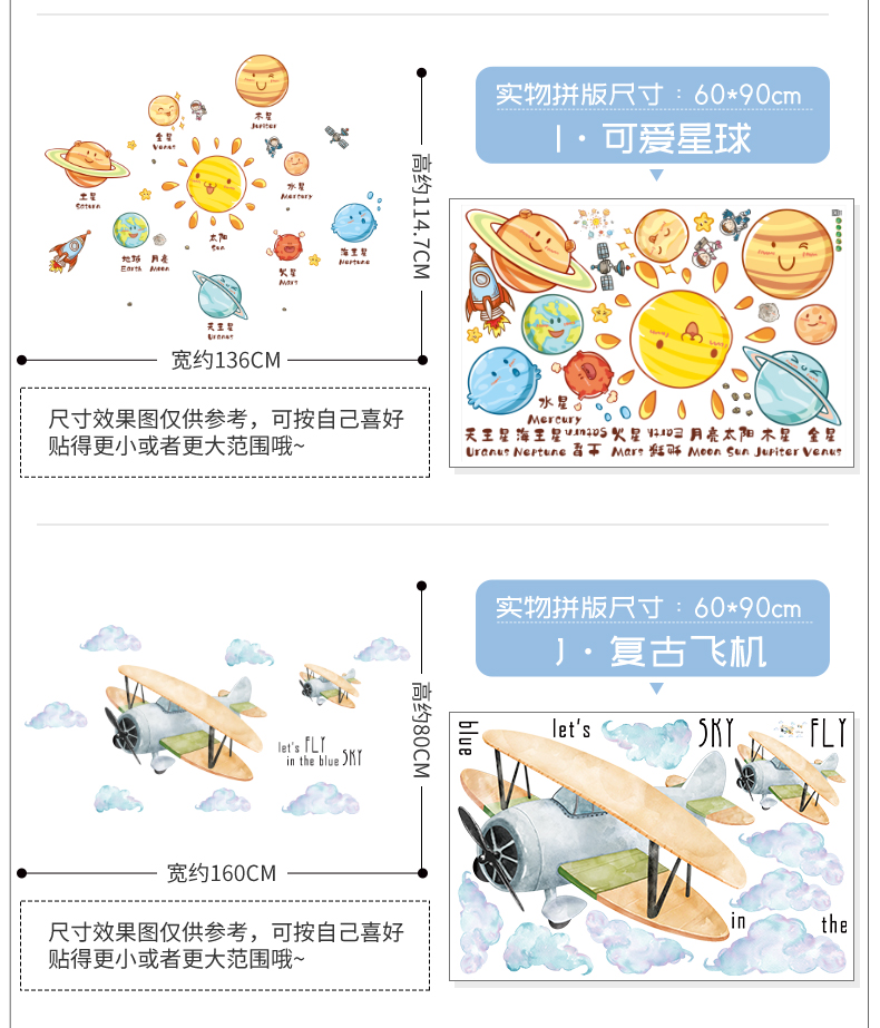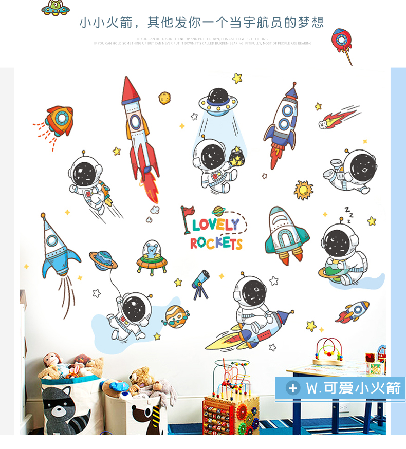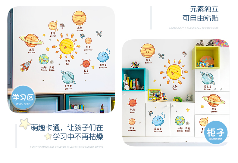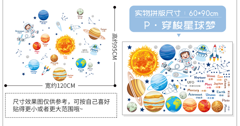 兒童房間佈置背景牆紙自粘牆面星球貼紙牀頭裝飾創意個性太空貼畫