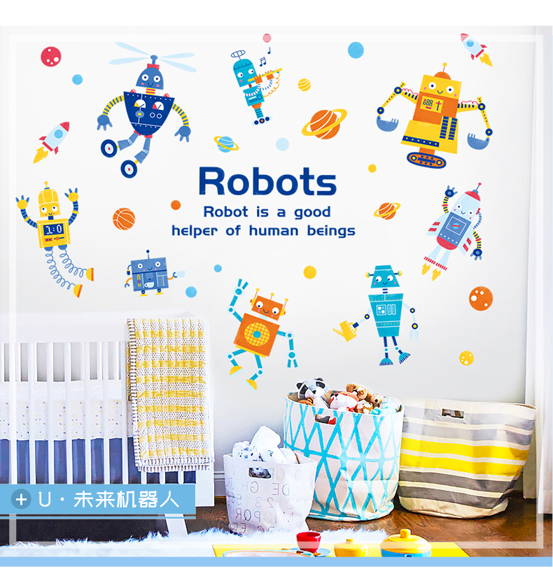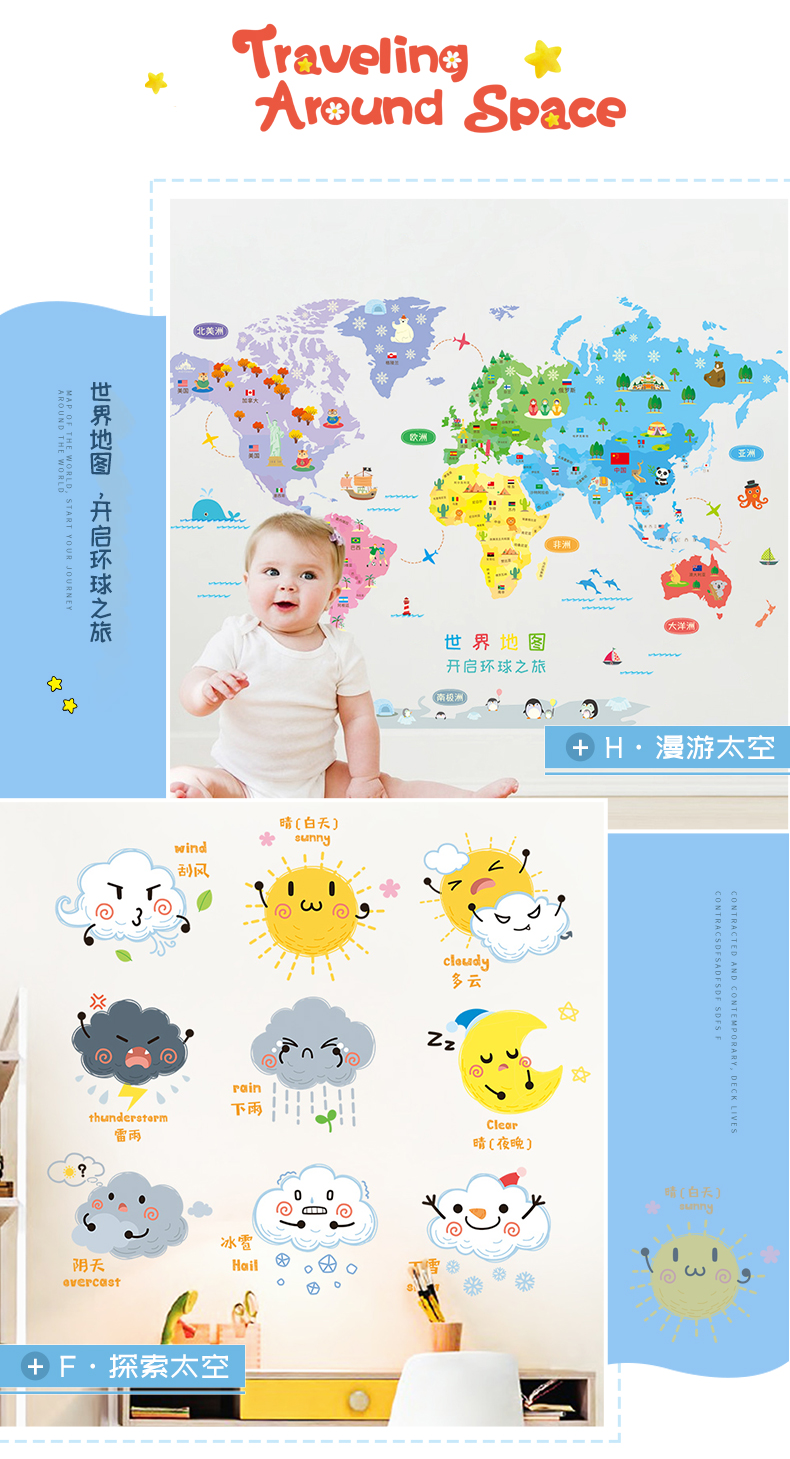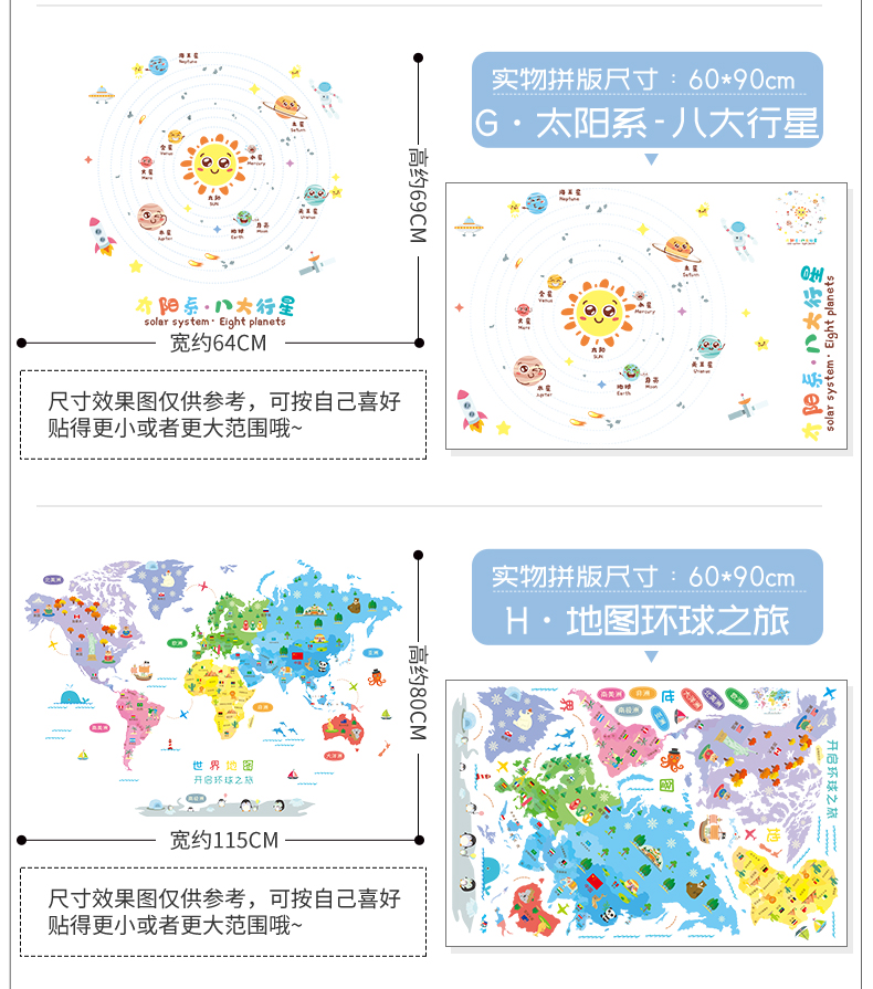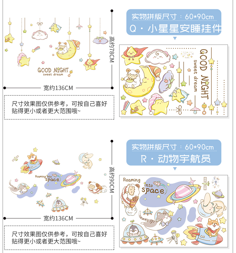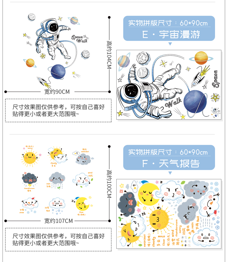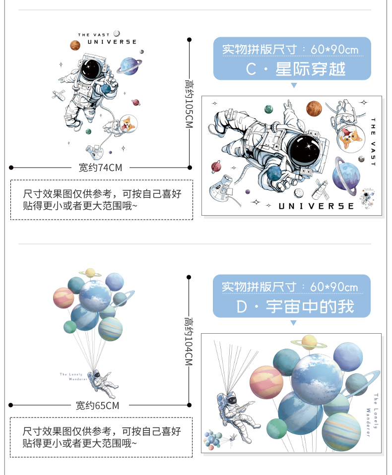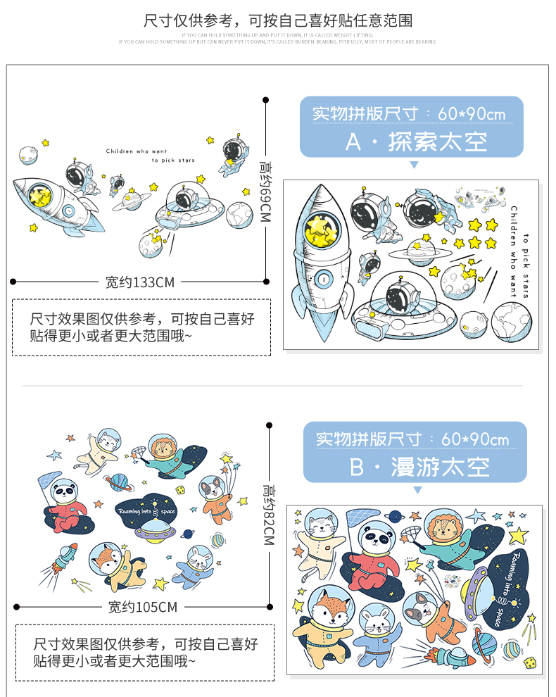 兒童房間佈置背景牆紙自粘牆面星球貼紙牀頭裝飾創意個性太空貼畫