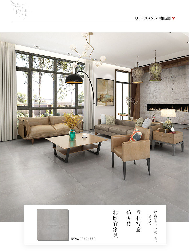 樓蘭瓷磚 仿古磚客廳餐廳地磚600*600北歐工業風水泥磚 摩卡時光