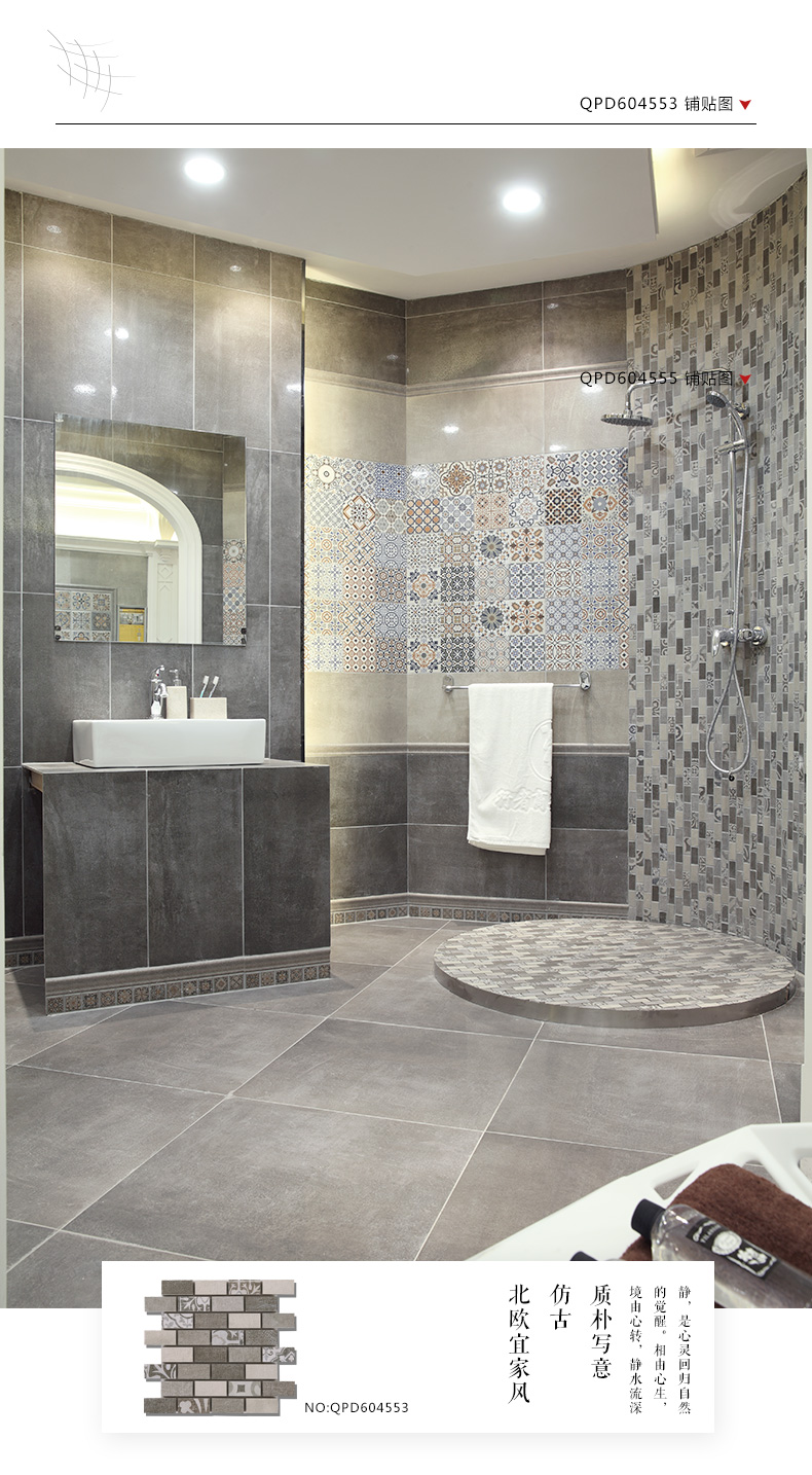 樓蘭瓷磚廚房衛生間地磚現代復古地中海仿古磚防滑廚衛磚300*300