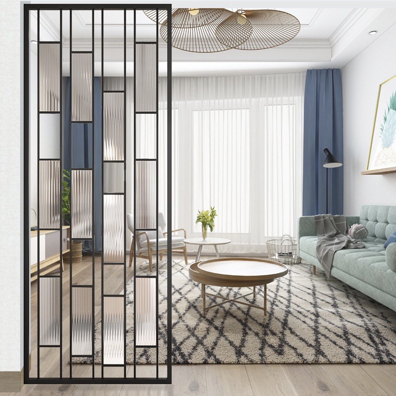 現代簡約鐵藝玻璃屏風隔斷客廳入戶玄關書房臥室遮擋裝飾創意屏風
