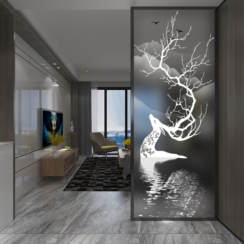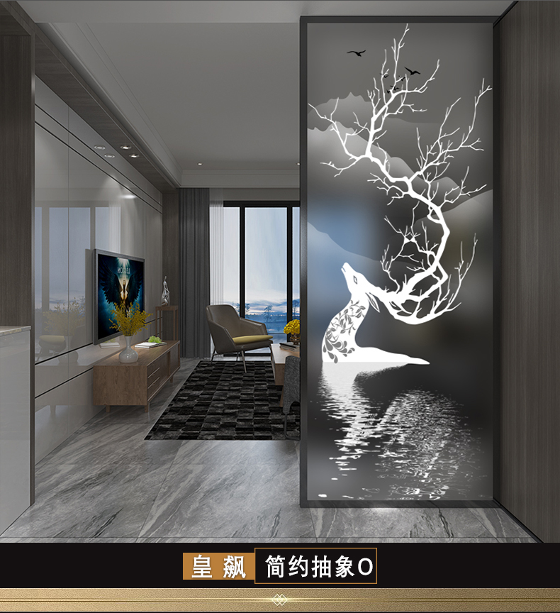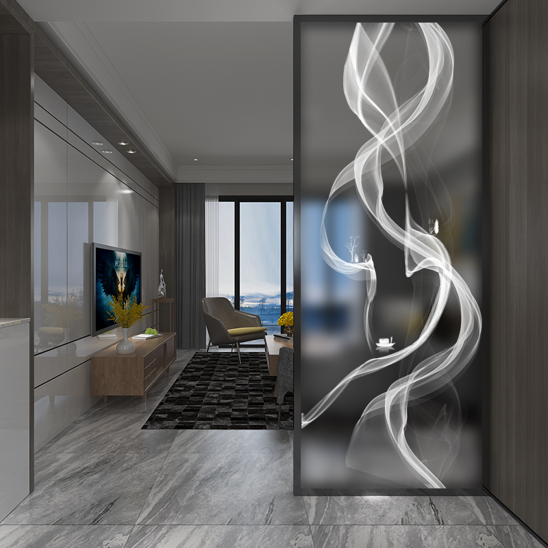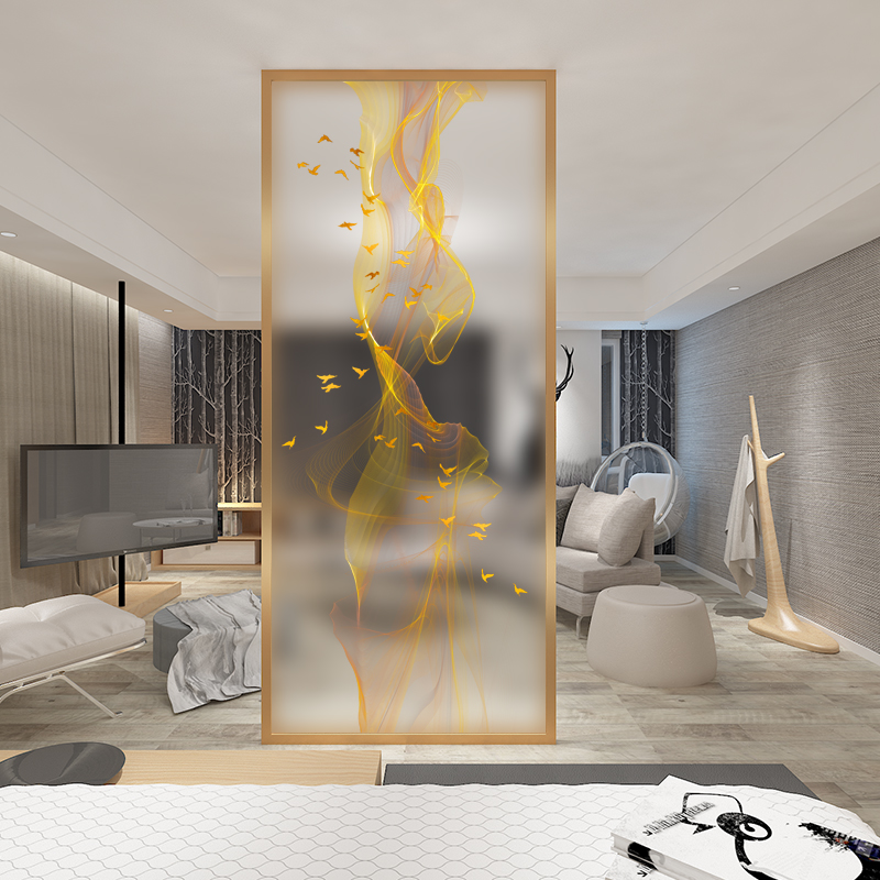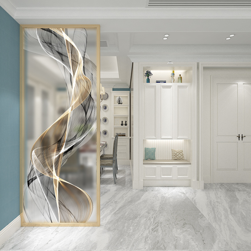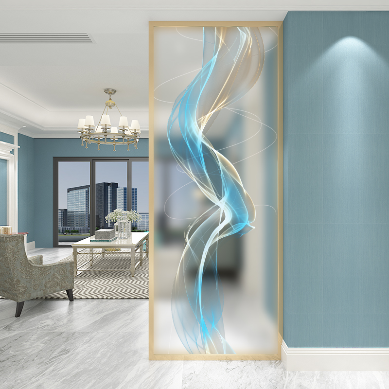 簡約輕奢藝術玻璃屏風隔斷牆乾溼區雙面背景磨砂透光工藝客廳玄關