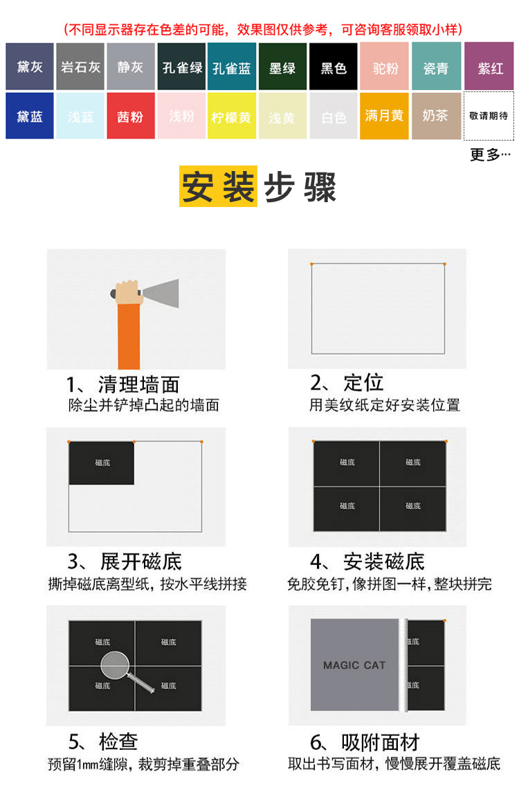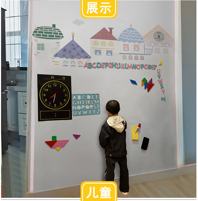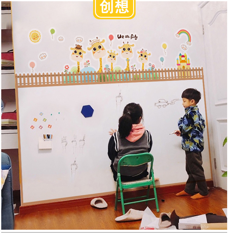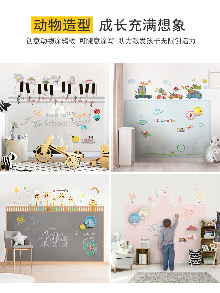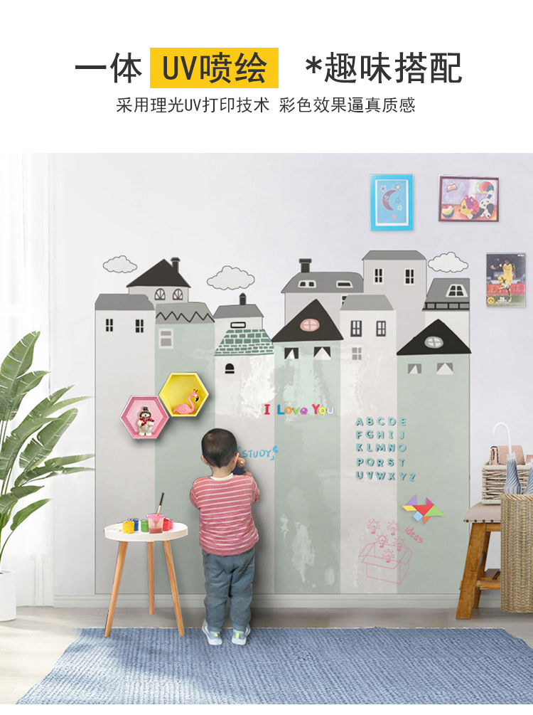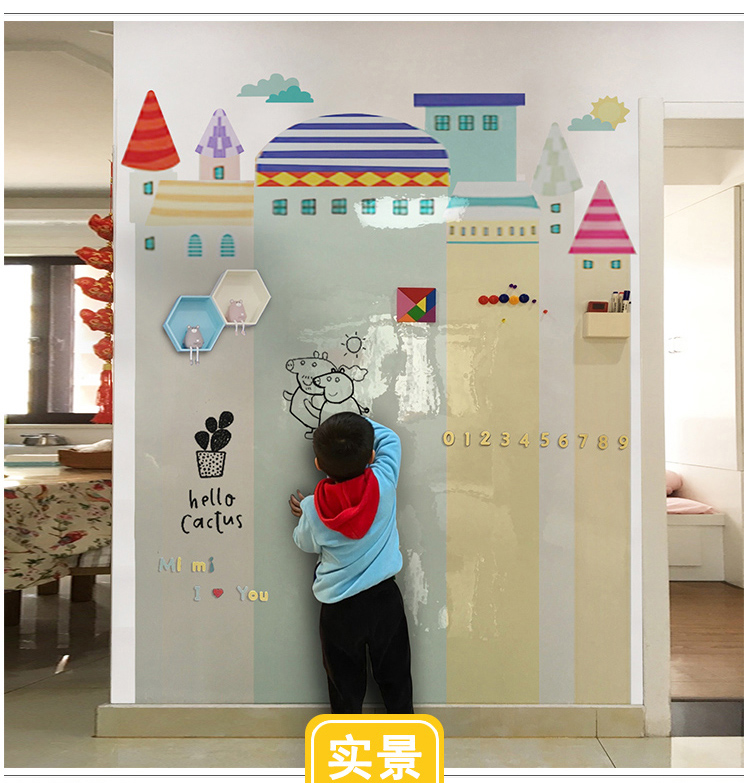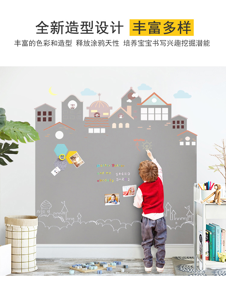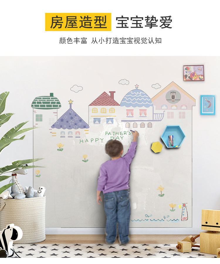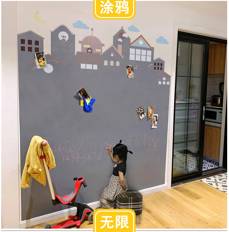 磁貓雙層黑板牆貼磁性黑板家用兒童房裝飾塗鴉牆壁紙家用寫字板連排屋形磁力白板牆貼UV印刷可定製環保無揚塵