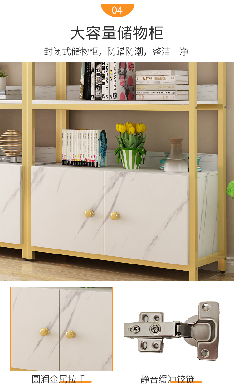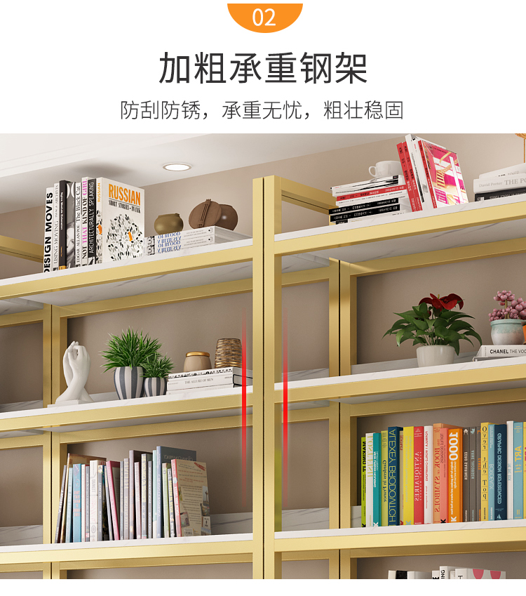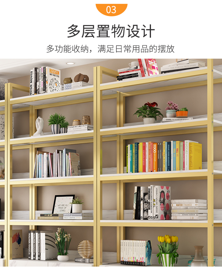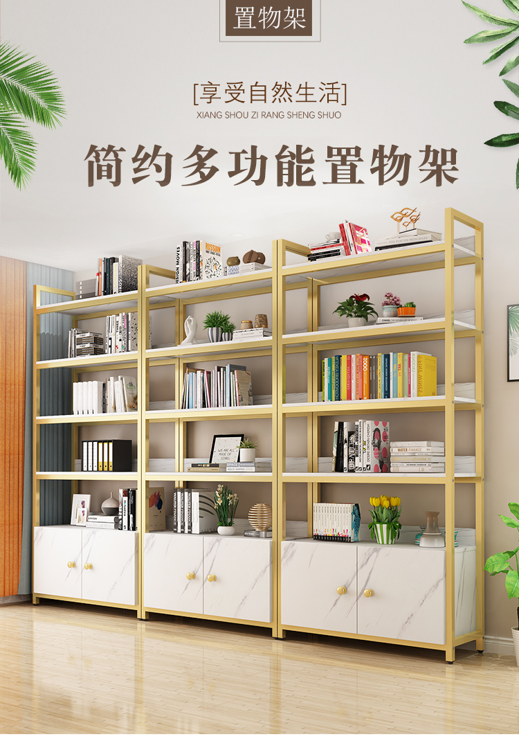 北歐辦公室簡約金色鐵藝置物架落地家用客廳鋼化玻璃隔層展示書架