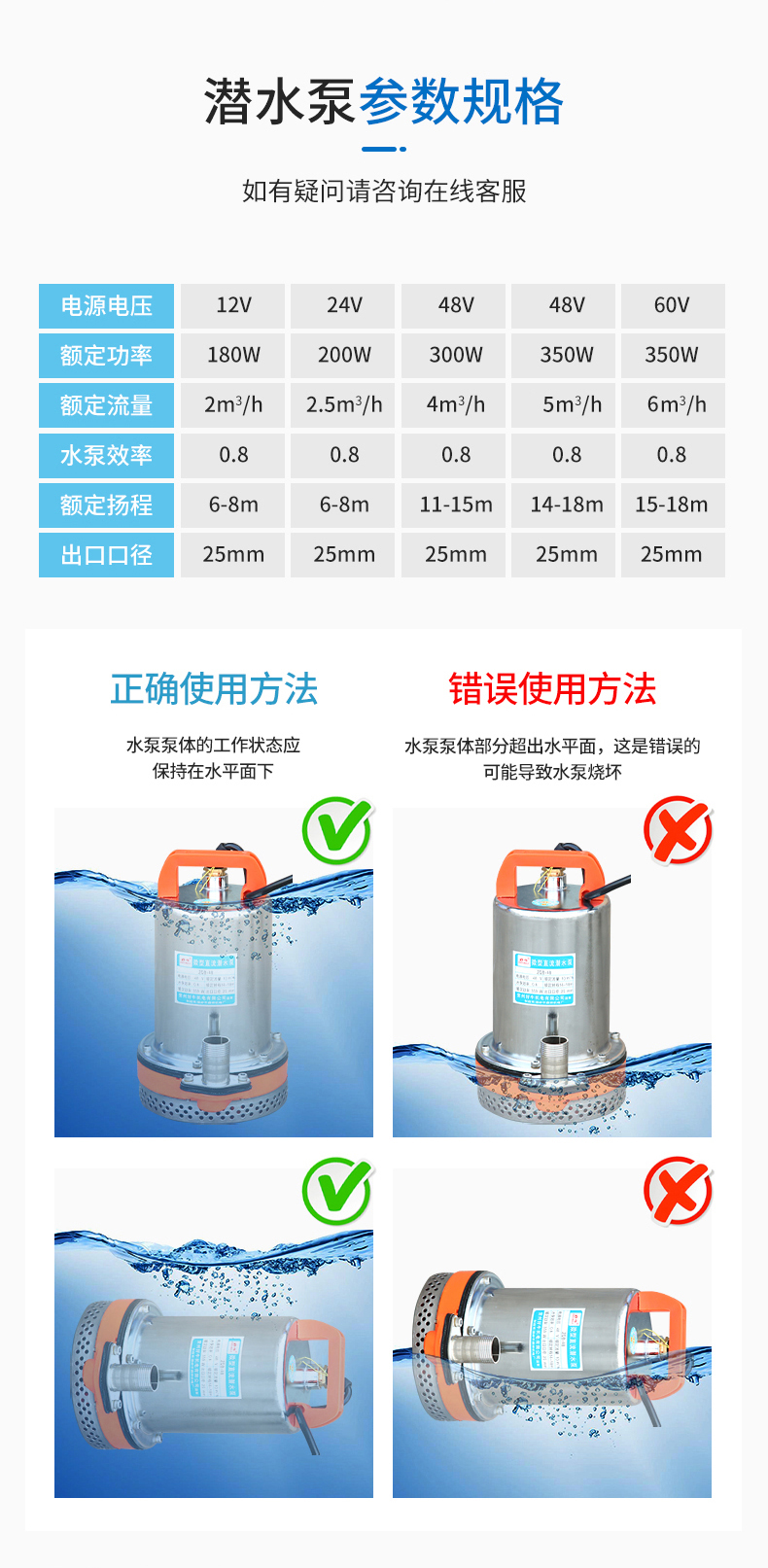 抽水泵12V直流潛水泵農用灌溉48V水泵電動車家用60V小型抽水機