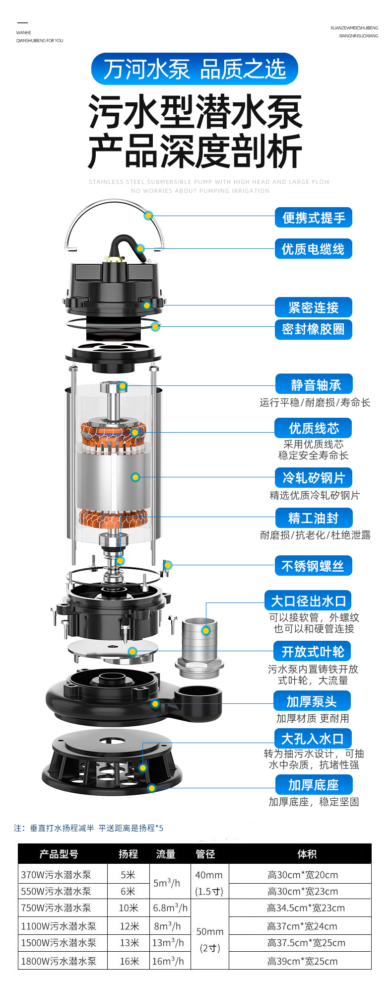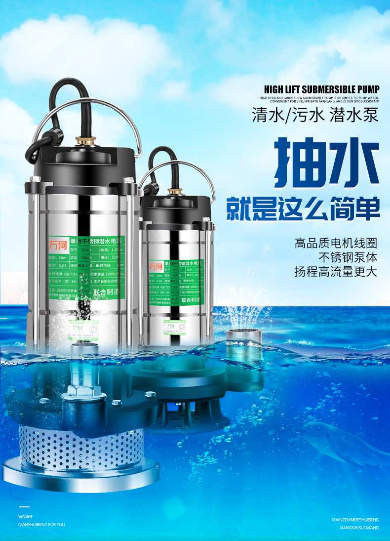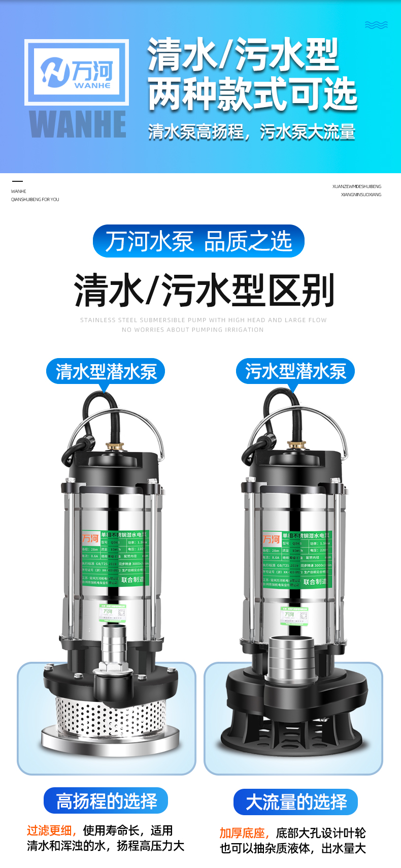 潛水泵家用井水全自動排污泵220ⅴ田地農田灌溉電水泵耐腐蝕戶外