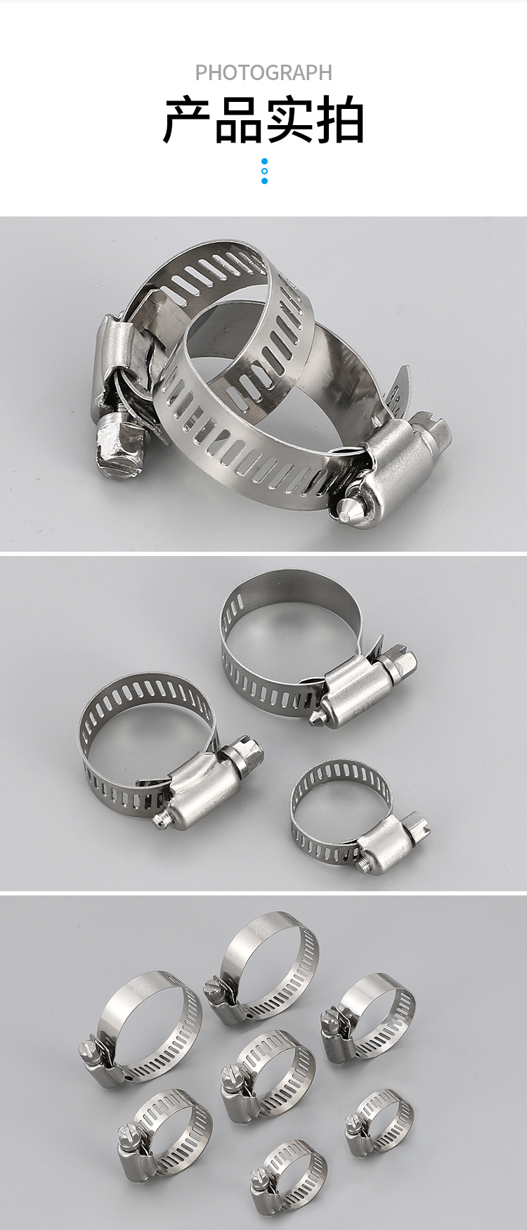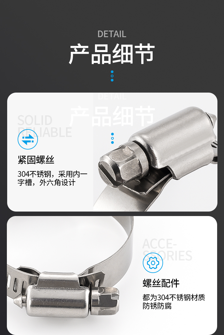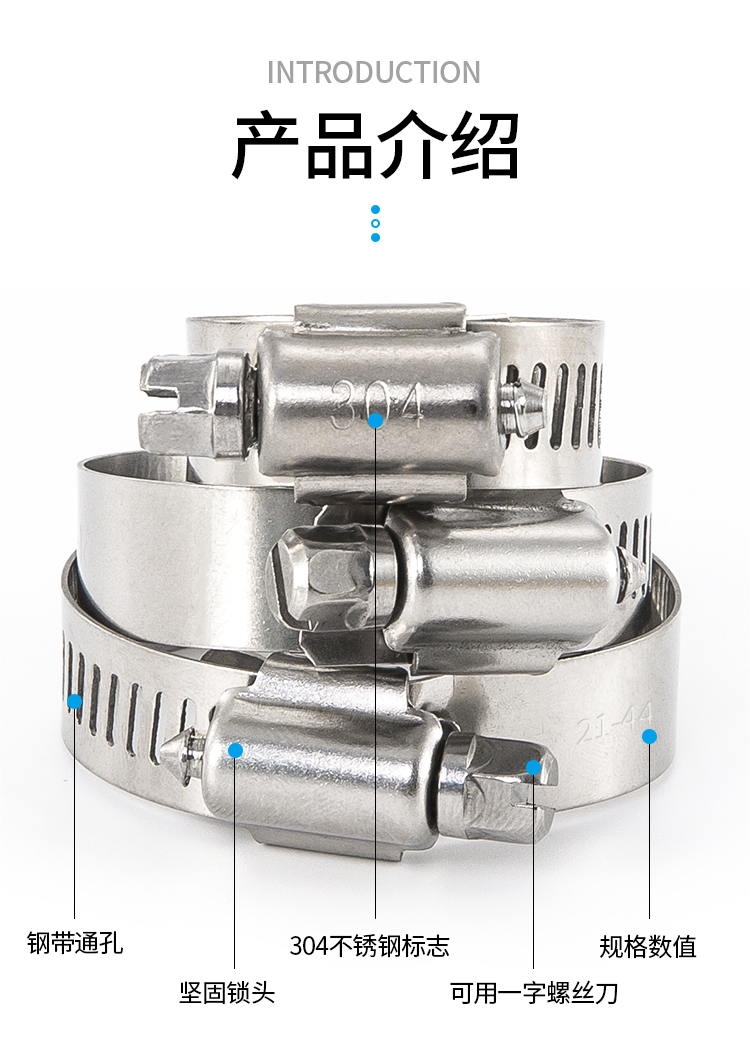304不鏽鋼卡箍一字美式喉箍抱箍管箍管夾盒裝套裝64PCS