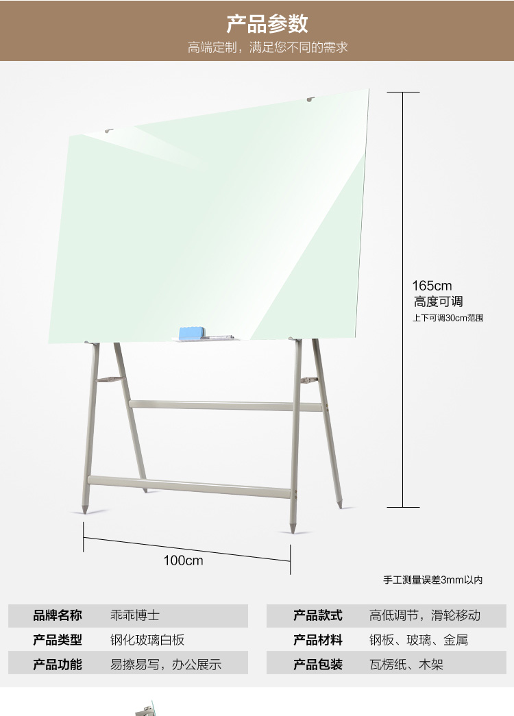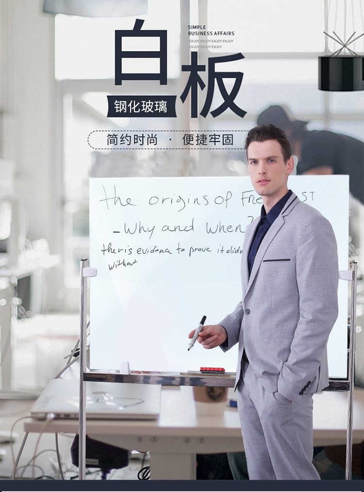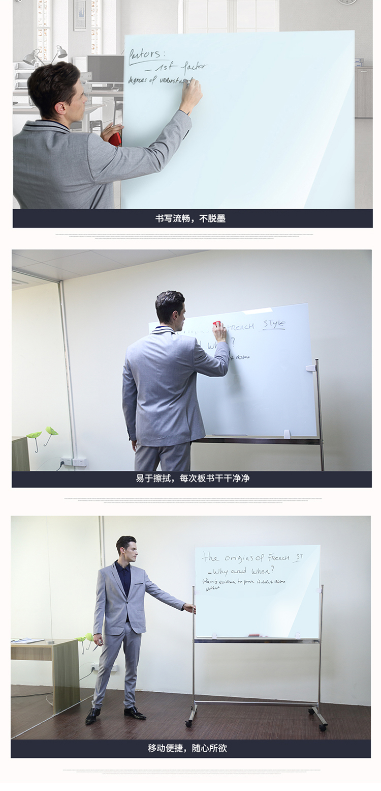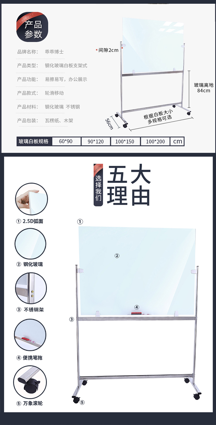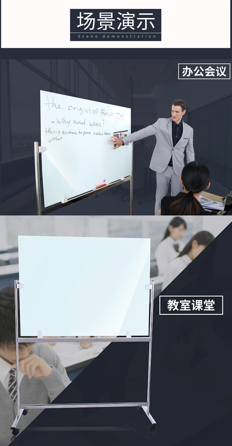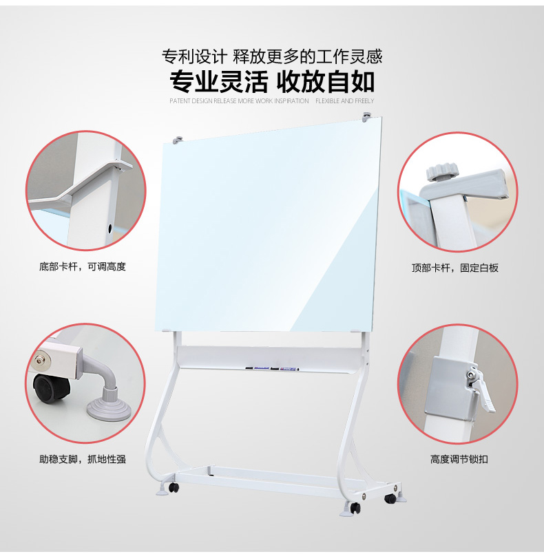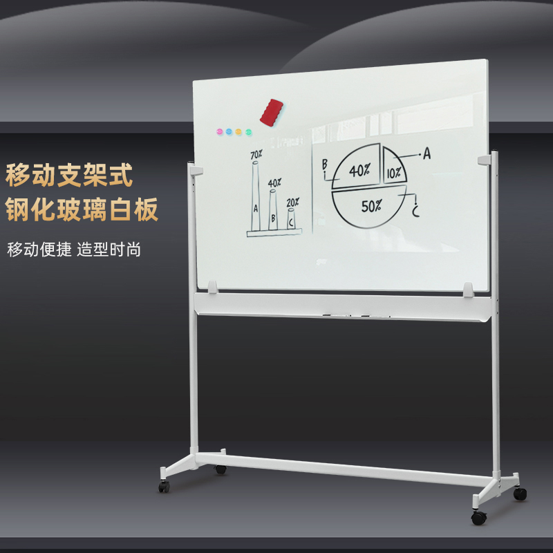 白板支架式磁性防爆鋼化玻璃立式移動辦公黑板家用教學培訓寫字板