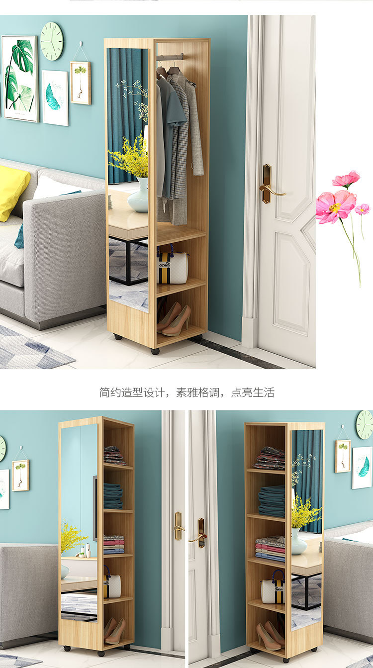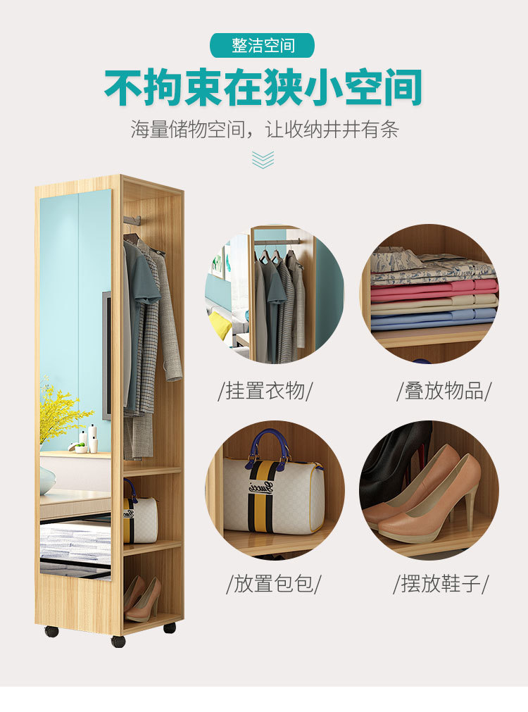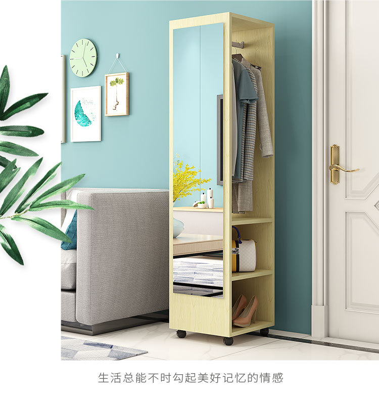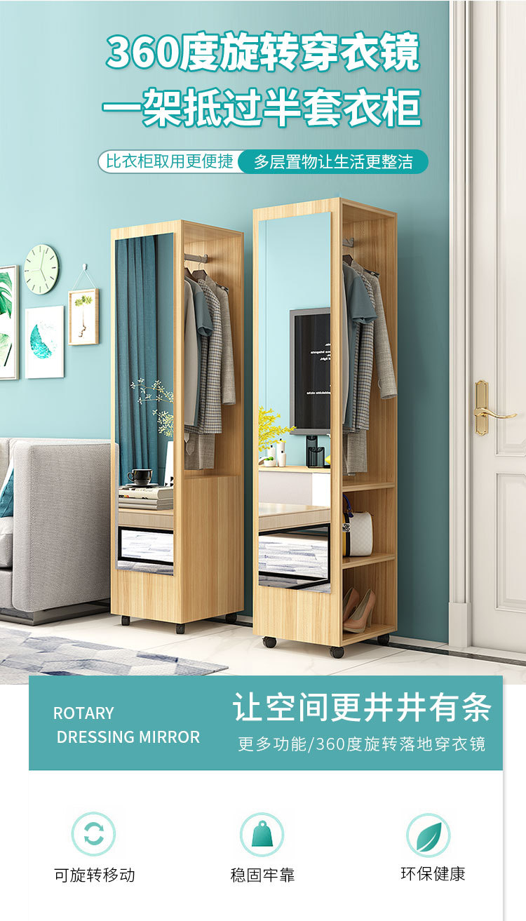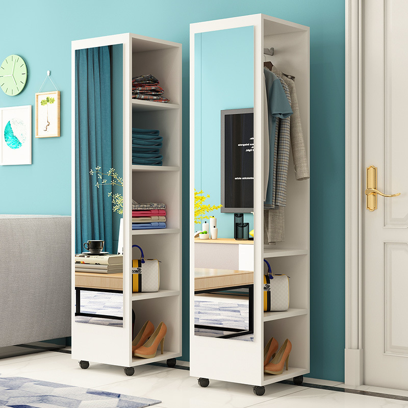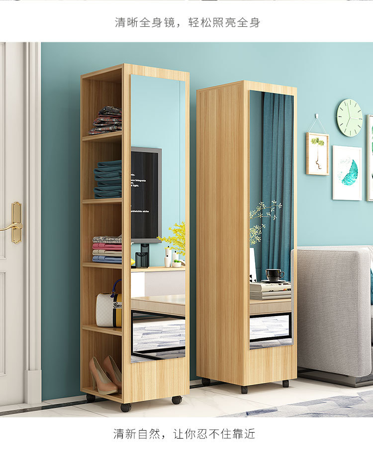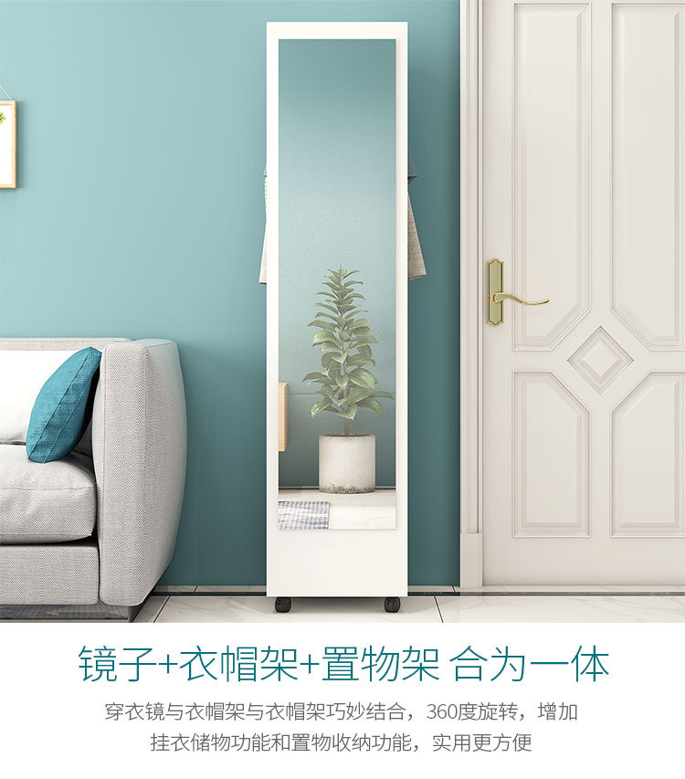 臥室穿衣鏡簡約衣帽架帶鏡移動試衣鏡旋轉收納櫃全身落地鏡家用