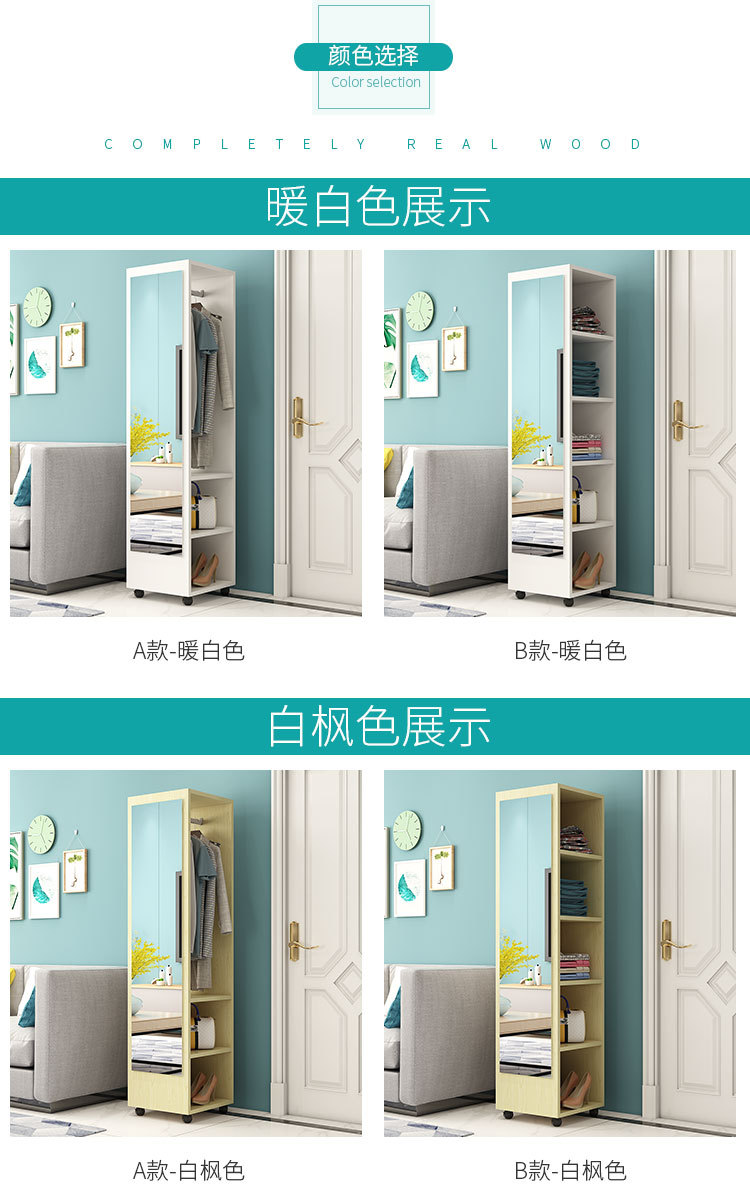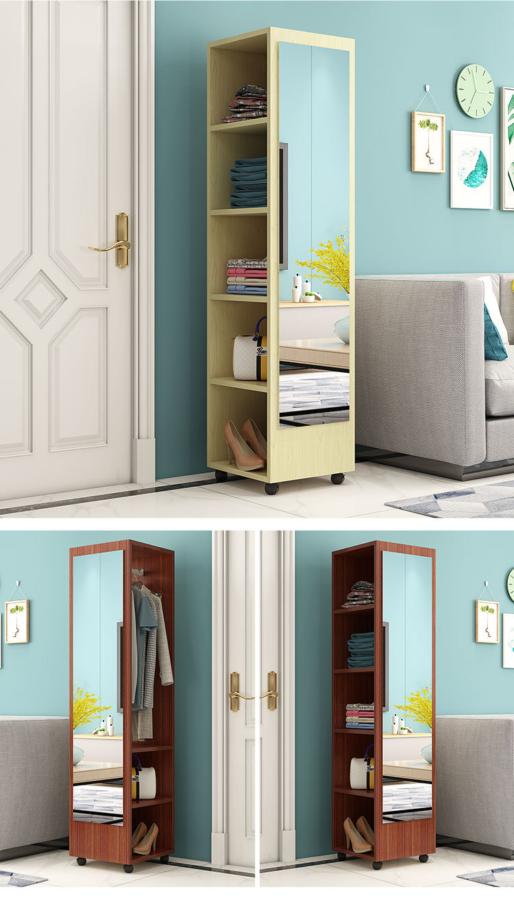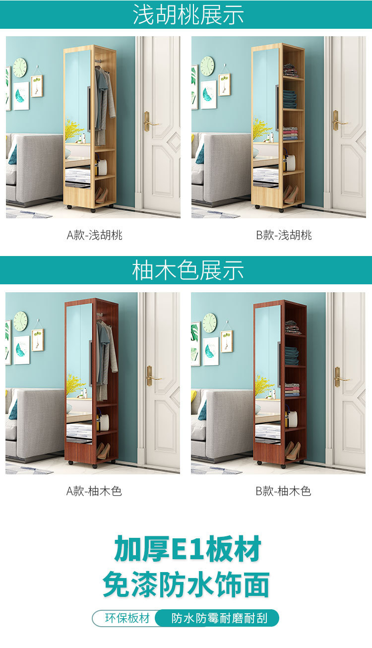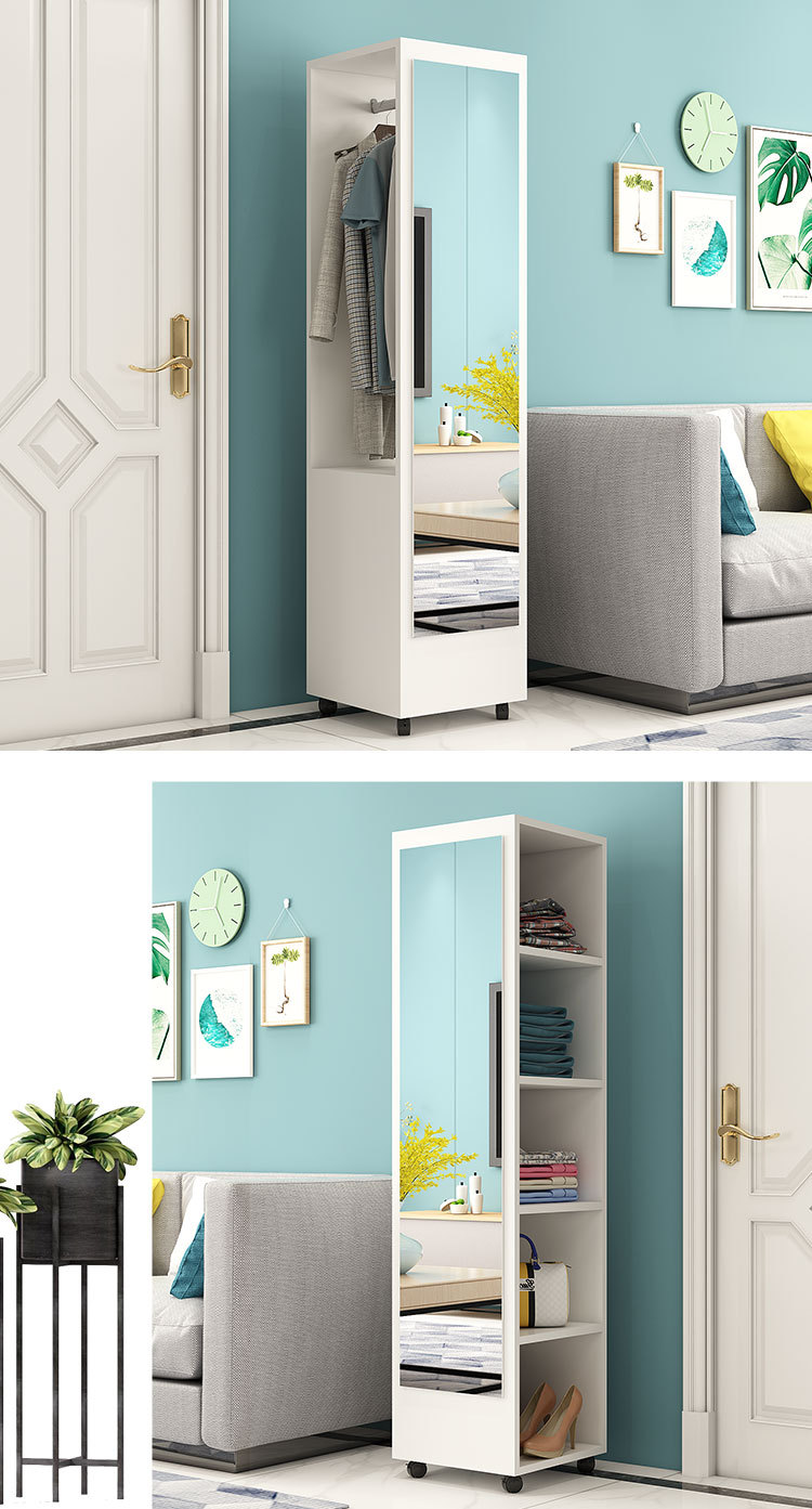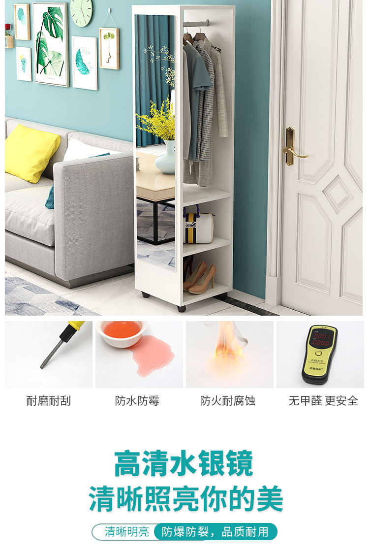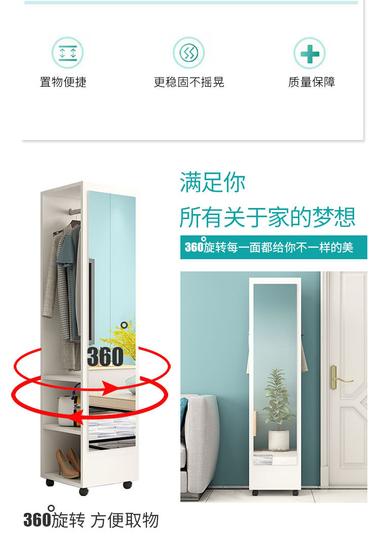 臥室穿衣鏡簡約衣帽架帶鏡移動試衣鏡旋轉收納櫃全身落地鏡家用