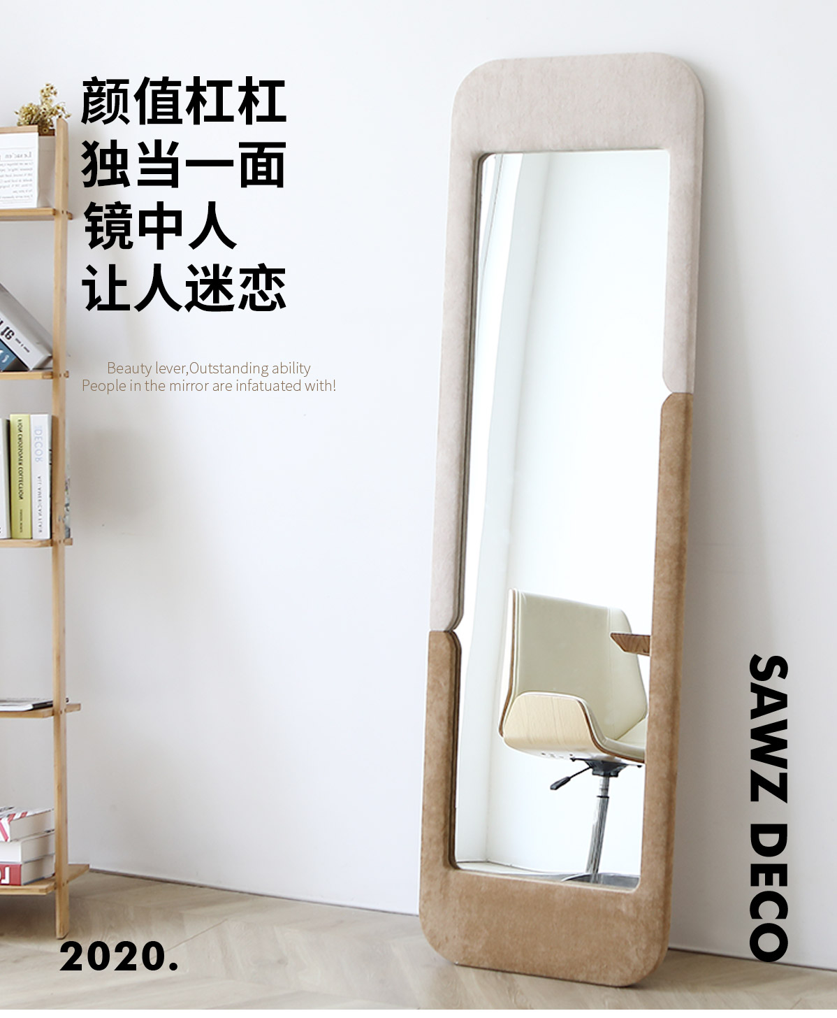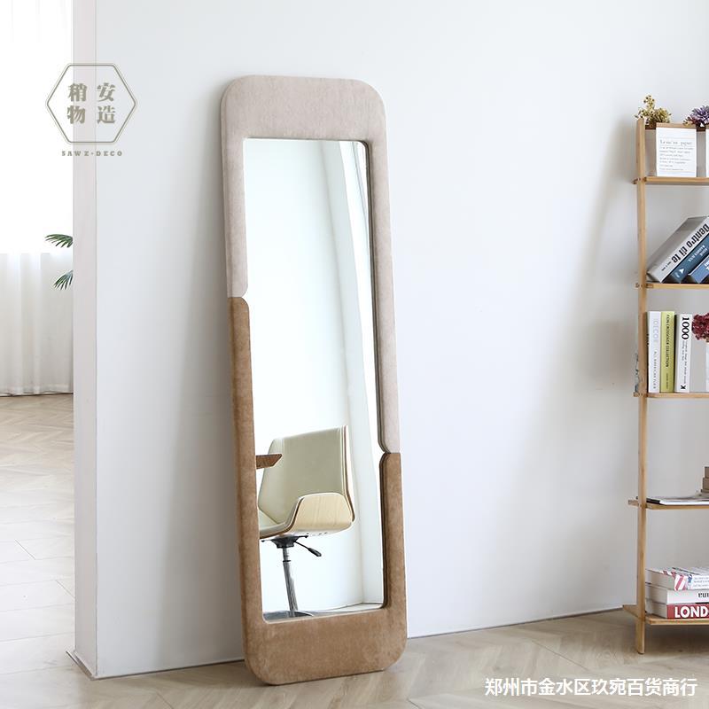 稍安物造 全身鏡穿衣鏡ins家用壁掛落地北歐軟包女生臥室服裝試衣