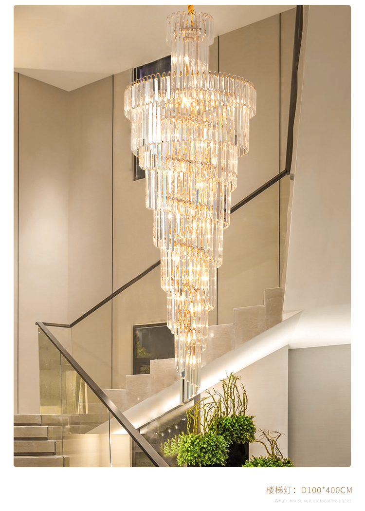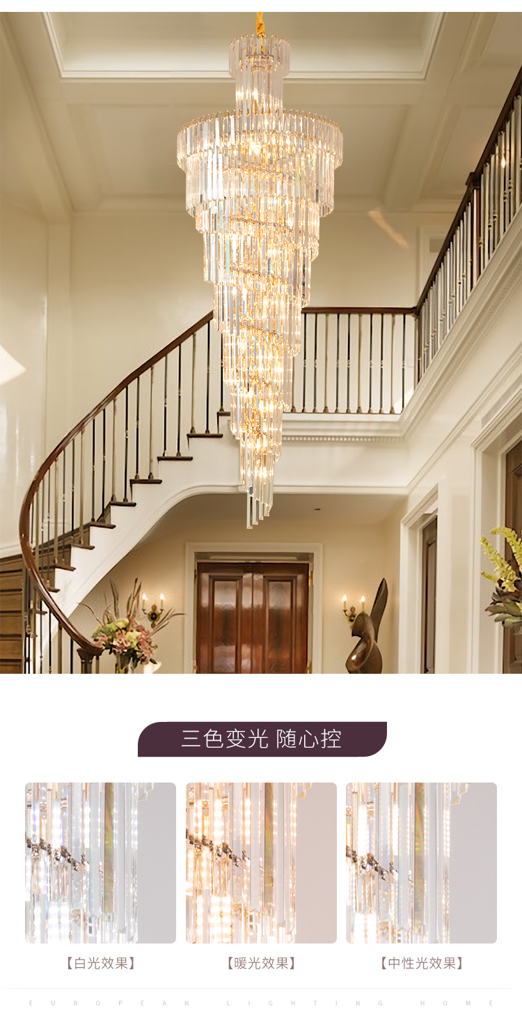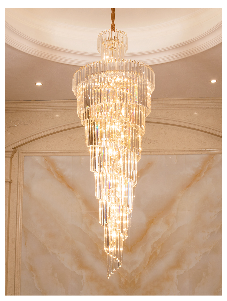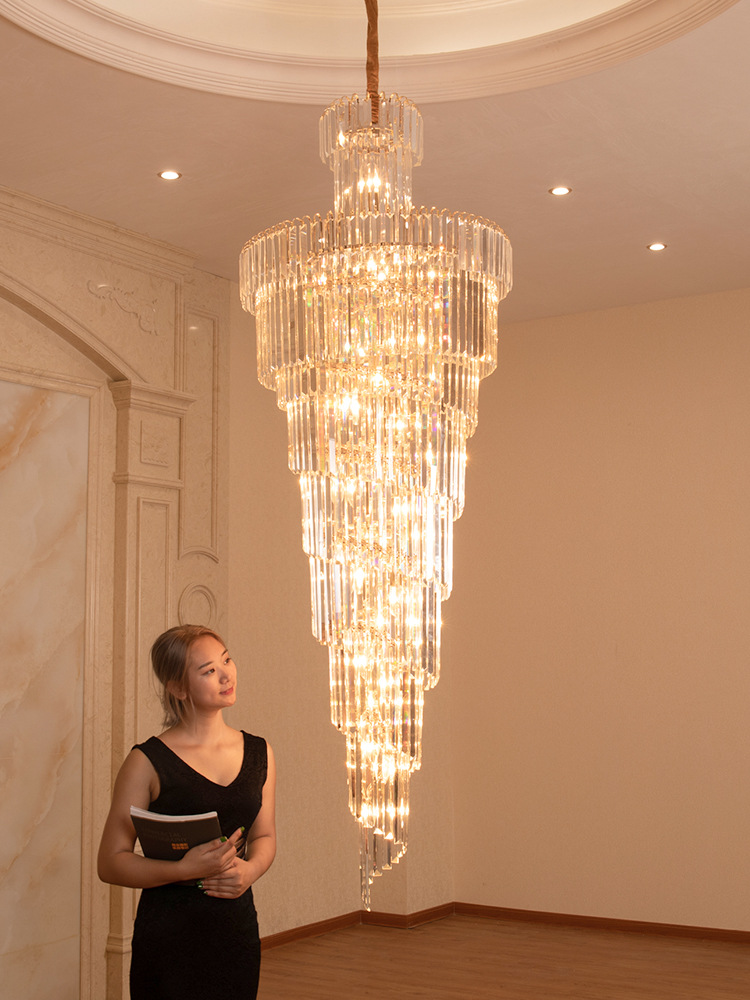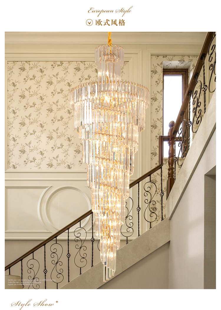 歐式別墅客廳水晶燈酒店大堂大吊燈複式樓中樓中空旋轉樓梯長吊燈