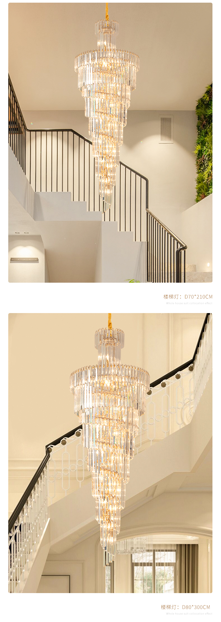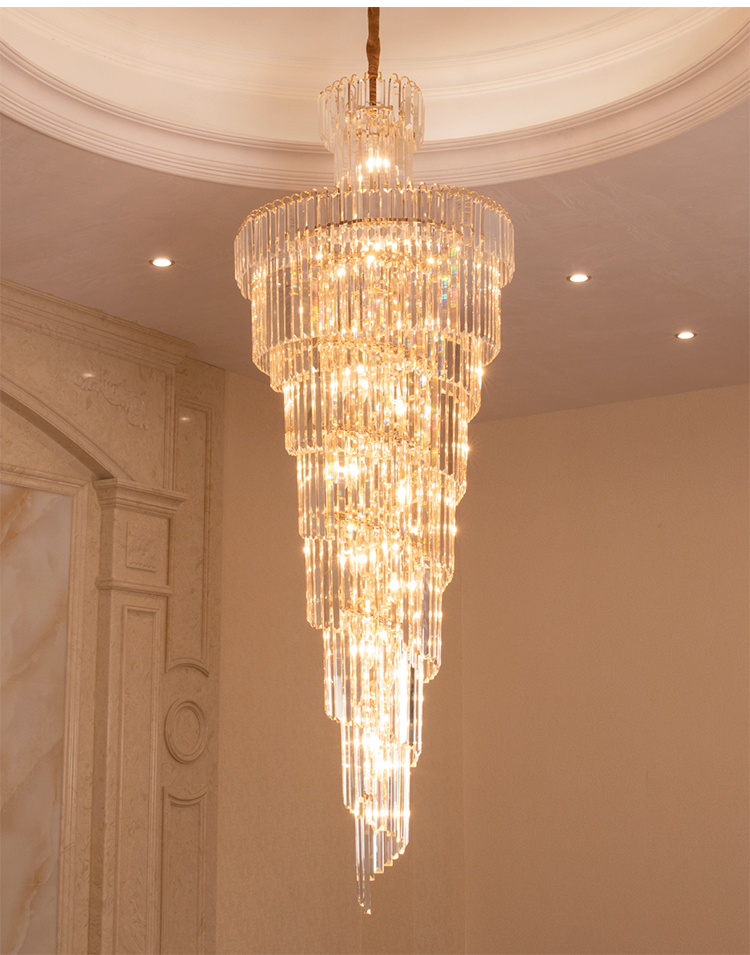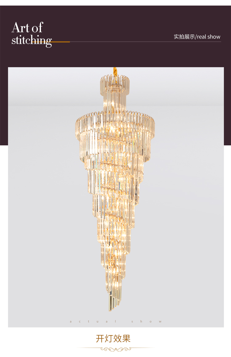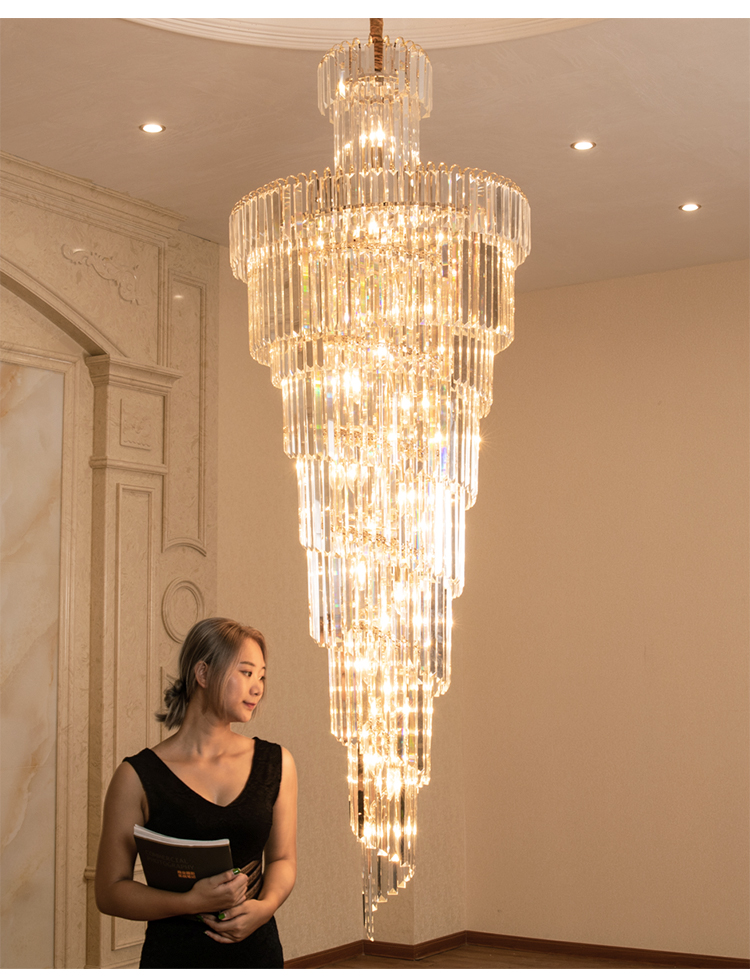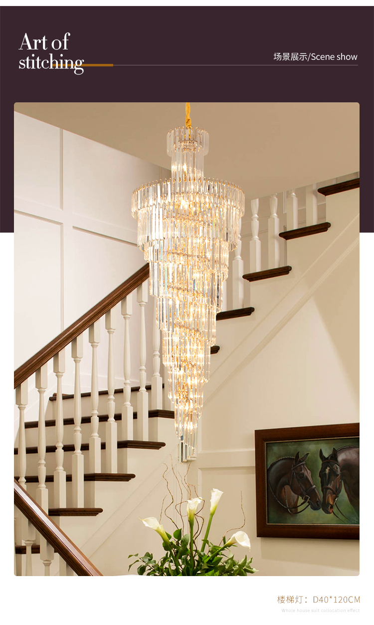 歐式別墅客廳水晶燈酒店大堂大吊燈複式樓中樓中空旋轉樓梯長吊燈
