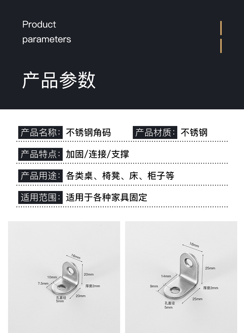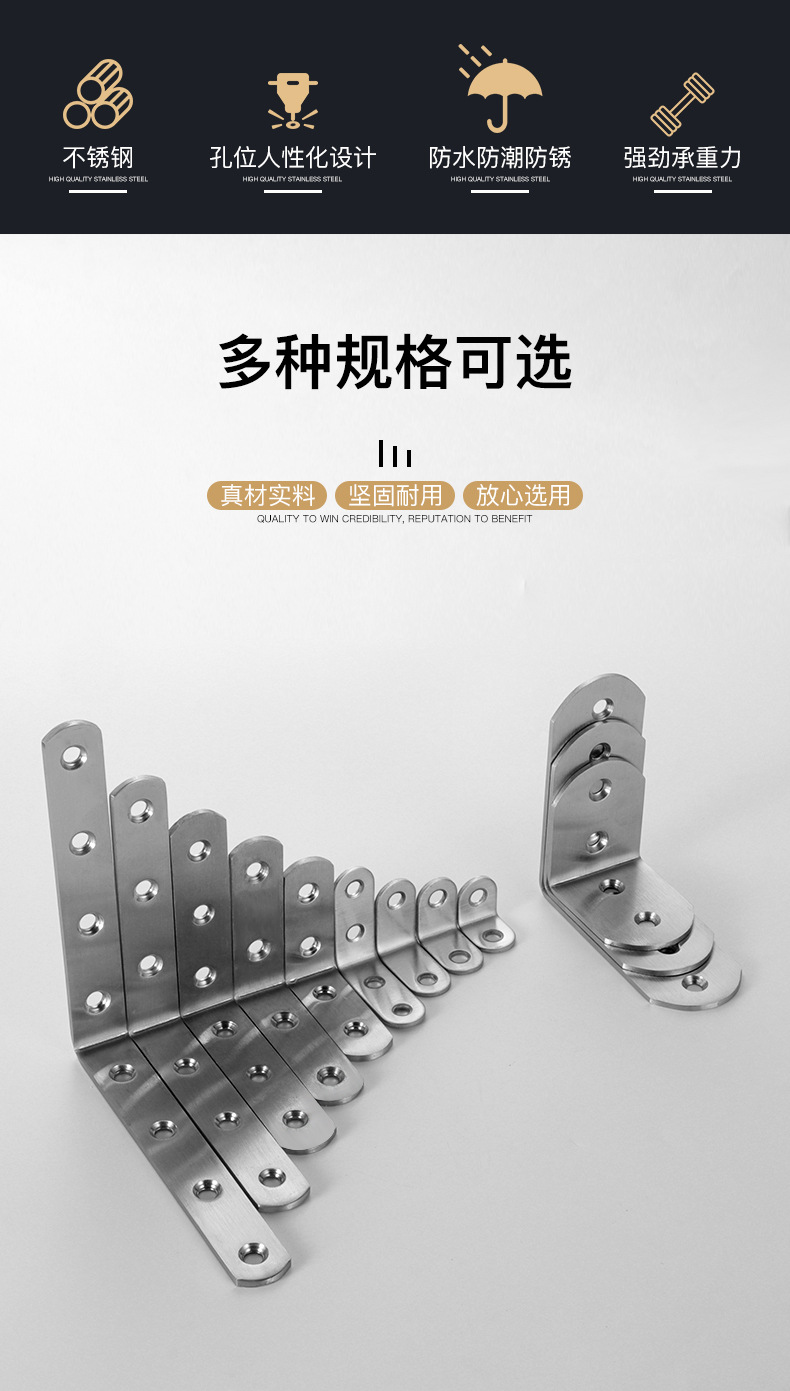 不鏽鋼角碼90度直角固定器角鐵l型三角鐵支架層板託傢俱連接件片t