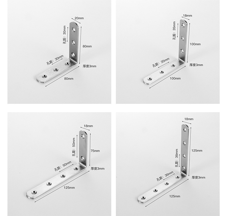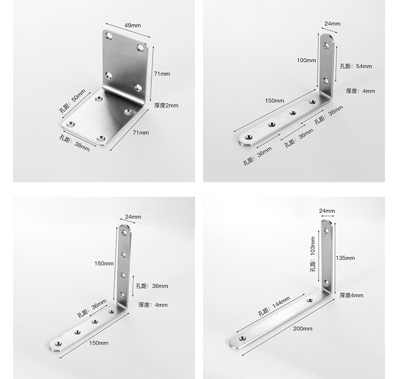 4孔不鏽鋼直角角碼 傢俱連接五金配件 隔斷固定角鐵層板託批發